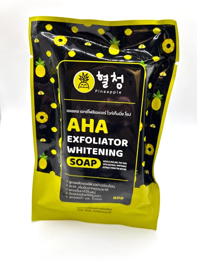 AHA Exfoliator Whitening Soap – Gentle Exfoliation & Radiant Glow Transform your skincare routine with our premium AHA Exfoliator Whitening Soap , specially formulated to brighten and rejuvenate your skin. Infused with Alpha Hydroxy Acids (AHA), this soap gently exfoliates dead skin cells, revealing a smoother, more radiant complexion. Key Features: ✨ Gentle Exfoliation: Helps remove dead skin cells, dirt, and impurities for a clean and refreshed feel. ✨ Skin Brightening: Enriched with AHA to promote an even and brighter skin tone. ✨ Moisturizing Formula: Contains nourishing ingredients to keep your skin hydrated and soft. ✨ Suitable for All Skin Types: Perfect for daily use on the face and body. How to Use: Wet your skin with water. Lather the soap in your hands or on a sponge. Gently massage the lather onto your skin in a circular motion. Rinse thoroughly with water and pat dry. For best results, use daily and follow up with sunscreen during the day. Why Choose Us? ✔ High-quality formulation for effective results. ✔ Safe and dermatologically tested. ✔ Fast shipping and excellent customer service. Note: Always perform a patch test before use. Discontinue use if irritation occurs. Elevate your skincare routine today! Order your AHA Exfoliator Whitening Soap now and experience the glow! 📦 Fast Shipping Available 📌 Buy with Confidence – 100% Satisfaction Guaranteed