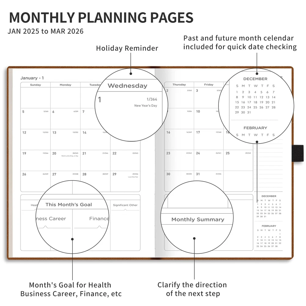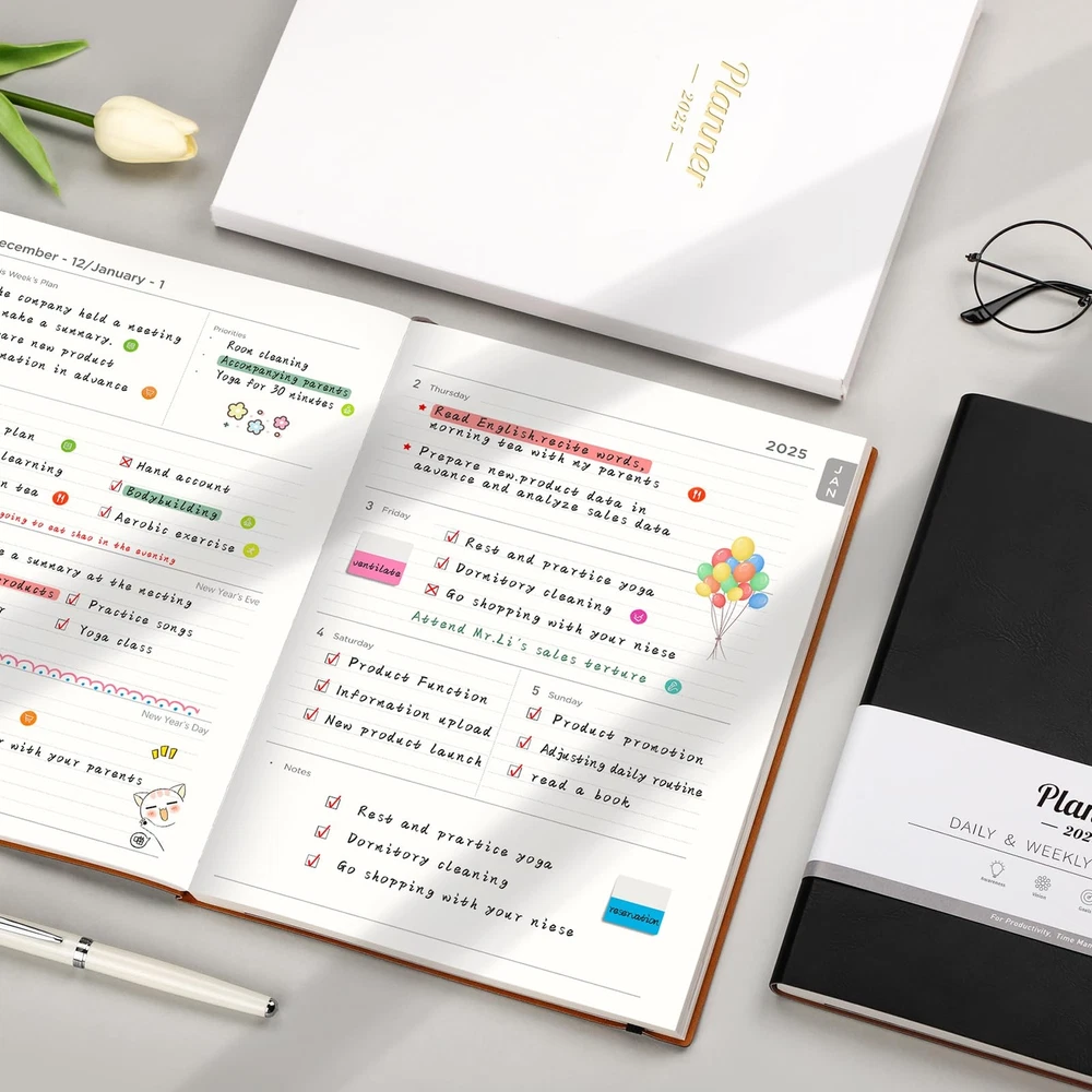 AHGXG 2025 Planner, Weekly and Monthly Planner 2025-2026, Calendar Planner 15-Months Jan 2025 - Mar 2026, Large A4 8.5"x11", with 14 Notes Pages, Vegan Leather SoftCover, Inner Pocket, Black AHGXG Monthly & Weekly 2022-2023 Planner ake charge of your schedule with classic style.High-quality paper, premium, simulated leather cover and twin wire binding to help keep pages secure for prolonged use.Planner has multiple colors AvailableProfessional Design: telephone/address page/yearly schedule/habit tracker/month summary/mindmap/password organizerFeaturesA4 Large Size: Each Weekly Planner comes with A4 size 8.3"x11.7", which will provide you enough room to write with.Durable PU Leather Hard Cover: The durable hardcover will help to protect the pages inside and provide a comfortable writing surface. Inner Pockets Design: The large back pocket is convenient for holding receipts, business cards, stickers, etc.Convenient Bookmark: There are two bookmarks in this ruled Journal to keep your spotHumane Content Design: The humane guide content can help you make a more detailed plan day by day, month by month.Cream Off-White Paper: The cream off-white paper will protect your eyes from strong lights and viewing strain.Enhanced Organization – Expand your organizational skills with special pages. Includes: telephone/address page/yearly schedule/habit tracker/month summary/mindmap/password organizer,etc.Specification2022-2023 Monthly & Weekly Planner100 GSM Thick Paper8 Note PagesElastic Closure Band2 Ribbon Bookmarks1 Expandable Back PocketPackage included1 Pack Weekly Appointment Book & Planner with Creative Sticker 2025 PLANNER: AHGXG 2025-2026 Planner spans 15 months, December 30th and 31st of 2024 and spanning from January 2025 to March 2026. The large A4 size (8.5"x11") gives you plenty of planning room to let your organization flow freely MONTHLY Calendar View: Each month spans two full pages, featuring unruled daily blocks with reminders for US holidays, offering ample space for daily scheduling. The month's goals and summary provide clarity for the next steps. Reference calendars for the previous and next month facilitate easier year-round planning and tracking, making it ideal for long-term organization WEEKLY PLANNING: Each week includes sections for priorities, notes, and ample lined writing space. It allows you to write down your daily to-do list, important appointments, ideas, and more, ensuring efficient organization and productivity COMPREHENSIVE PLANNING: This 2025 planner covers everything you need for year-round planning, including Yearly Overview & Schedule, Important Dates, Holidays, Habit Tracker, Yearly Goals, Month Summary, Note Pages, Address Book, Password Organizer, and US time zone map. Special sections facilitate comprehensive planning, while Sticky Notes Divider simplify navigation PROFESSIONAL DESIGN: 2025-2026 Planner to take charge of your schedule with timeless elegance. Crafted with a premium simulated leather soft cover, tight sewn binding, and 100gsm thick paper, it ensures durability for prolonged use. Additionally, it features an inner pocket to conveniently store miscellay, keeping all essentials within reach Shipping from the USA All of our products are shipped from the USA, ensuring quick delivery to your destination. Payment We offer the following payment methods: PayPal, credit card, bank transfer, and eBay's secure payment system. Free Shipping & Free Returns Shipping within the USA is FREE. Additionally, any return is absolutely free for you. Risk-Free Purchase You have the option to return an item within 30 days without any justification. We cover the return shipping costs! Fast Shipping We ship immediately upon receipt of payment. Generally, the package is delivered within 2-3 days in the USA. If it takes longer, we will contact you. Quality and Costs Made in Europe, USA, China No customs fees or additional charges Total satisfaction guarantee Invoice with declared VAT available upon request in .pdf format Feedback Your feedback is very important to us. After you pay for your purchase, you will automatically receive positive feedback from us.