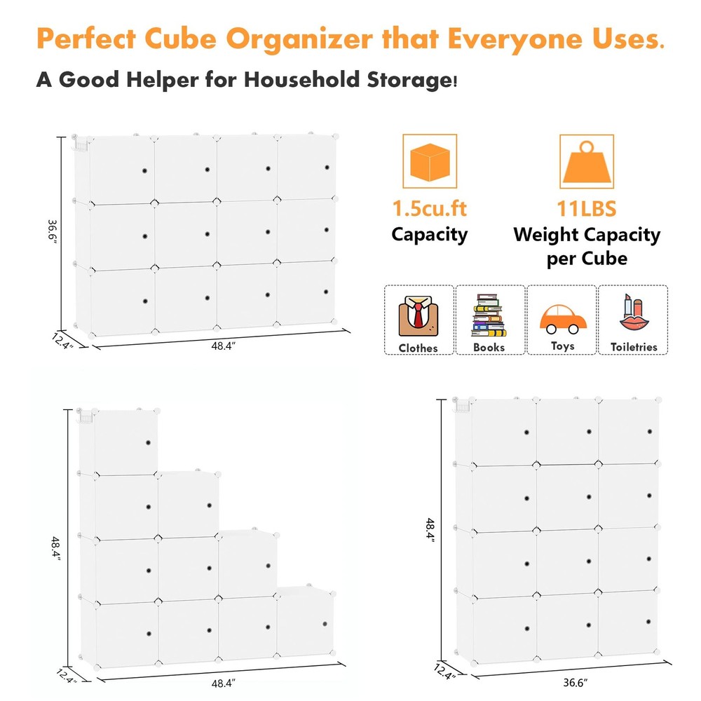 By displaying some books, photos, toys, bags, potted plants in your bedroom or living room, this amazing cube organizer will make your house romantic and fashionable. ELEGANT DISPLAY SHELF: Well-organized home makes you being at home more enjoyable. The modern fashionable plastic cube organizer by displaying multiple items, such as books, photos, toys, bags, potted plants, CDs make your house organized and neat LARGE CAPACITY STORAGE: Each cube size is 11.8"L × 11.8"W × 11.8"H. The product dimensions is 36.6”L x 12.4”W x 48.4”H. Fits storage bins that is smaller than 11 × 11 inch STURDY STRUCTURE: Our cube storage organizer is made of high quality PP materials, rust-proof metal frame and ABS connectors. Sturdy structure ensures that each cube can withstand a maximum weight of 11 lbs EASY TO ASSEMBLY: Easy for you to assemble the simple organizer. With the help of the wooden mallet, you can create different blocks to fit different spaces or shapes to meet your needs SATISFACTION: &AHOME will provide you the satisfaction before and after your purchase. Just buy and enjoy it