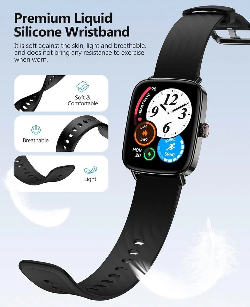 This smartwatch is a game-changer! The 1.85" screen is crisp, and the AI voice control works flawlessly. Love that it's IP68 waterproof—perfect for workouts and swimming. The health tracking is super accurate, monitoring everything from heart rate to sleep. The military-grade durability gives me peace of mind, and the lightweight design makes it comfortable for all-day wear. Works in extreme temps too! Highly recommend for anyone wanting style, durability, and smart features in one.