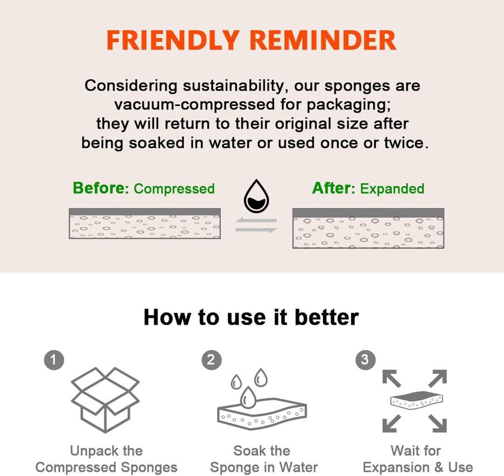 AIDEA Non Scratch Scrub Sponges, 6Count, Natural Sponges for Stick Brown Product Details Brand: AIDEA Material: Biodegradable white cellulose, Sisal Fiber Recommended Uses For Product: washing dishes, cleaning kitchen surfaces, cleaning bathroom surfaces, cleaning appliances Surface Recommendation: Por, Wood, Glass, Plastic, Stone Color: Brown Special Feature: Durable, Non Scratch, Long lasting Item Package Quantity: 6 Included Components: 6 Count Product Dimensions: 4.25"L x 2.56"W x 0.87"Th Model Name: Non-Scratch Scrub Sponge Number of Items: 6 Manufacturer: AIDEA Item Weight: 3.2 ounces Superior Cleaning Power: AIDEA non-scratch cleaning sponges tackle messes effortlessly; protect surfaces from scratches; sturdy abrasive scour pads remove stuck-on food; high-density sponge maintains rebound resilience and resists deformation Dishwasher-Safe Sanitization: Made with sustainable materials, AIDEA kitchen sponges rinse clean and dry quickly; prevent unpleasant odors; for extended use, sanitize in your dishwasher Scratch-Free Cleaning: AIDEA non-scratch sponges ensure safe use on delicate surfaces; their soft material prevents scratches on cookware, glass, and ceramics; effectively clean without risking damage; maintain the integrity and appearance of your kitchen essentials Versatile Cleaning Solution: Dual-sided design; one side for gentle scrubbing, the other for wiping and absorbing; versatile for various tasks; cleans dishes, pots, pans, sinks, stoves, and appliances; keeps your kitchen shiny and tidy; ideal for diverse household cleaning needs Long-Lasting & Sustainable: AIDEA natural sponges made from white cellulose and sisal fiber; resistant to tearing and wear even after repeated use; ideal for tough burned food stains; ensures extended use