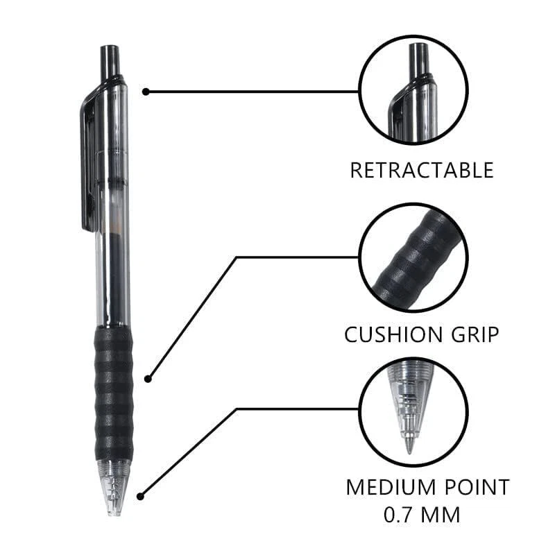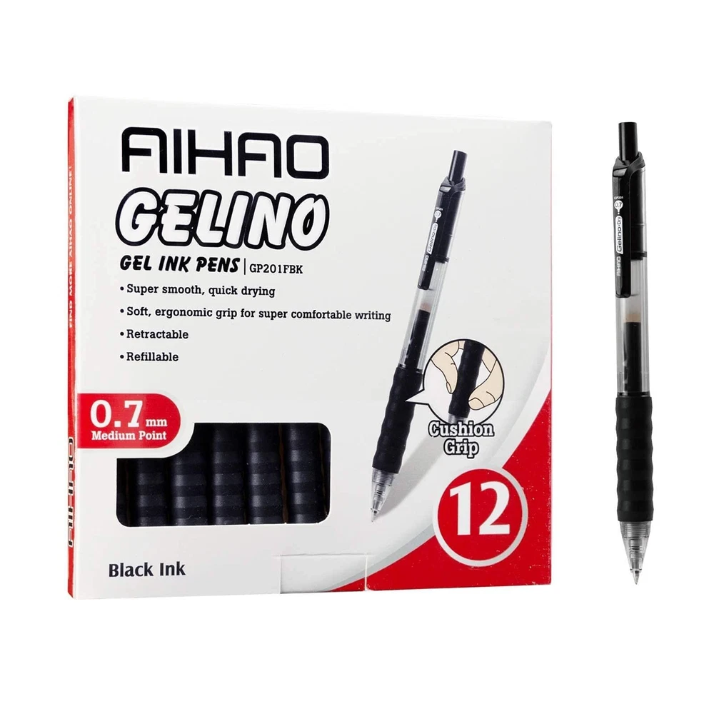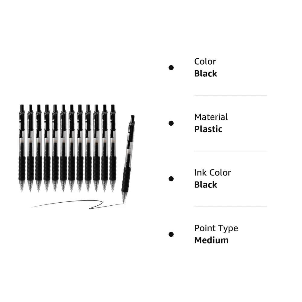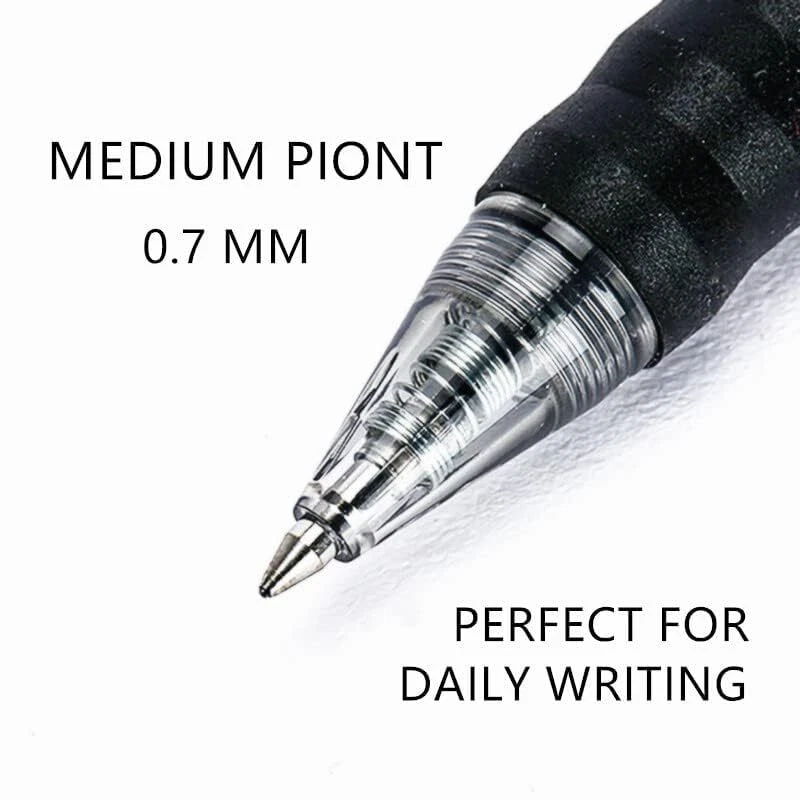 GEL INK PEN- The gel ink pen with black fast drying ink, smooth writing, no smear, no skip, no blob. Vivid and fresh ink delivers a fluent writing experience, and durable for long time. Favorite to left-handed user. COMFORTABLE GRIP- Cushion,soft, ergonomic grip for super comfortable writing; Comfortable and easy to hold; Pocket clip to attach to notebooks or pockets. A good helper for doing homework, having a meeting, journaling, writing a diary and scheduling. MEDIUM POINT 0.7MM - 0.7mm medium point gel pen creates smooth, vivid lines. Suitable for daily writing. The well-crafted point allows vivid and fresh lines. QUANTITY- One 12-count pack of quick dry black gel pens. Whether you're at school, work, or in the office, you’ll appreciate that these are comfortable to hold, write evenly, and dry fast. SERVICE GUARANTEE:Customer satisfaction is our greatest achievement, please rest assured about our products. If you have questions or dissatisfaction with our products, you can contact us at any time.