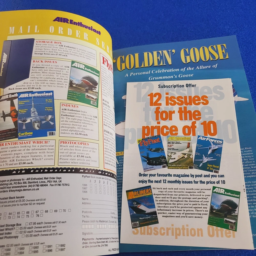 Publisher: AIR ENTHUSIAST Features: Illustrated Publication Name: AIR ENTHUSIAST JULY/AUG 1998 NO.76 Topic: Aircraft Signed: No Distribution: Paid Circulation Genre: Activity, Airplanes Publication Frequency: Bimonthly Publication Year: 1998 Language: English Issue Number: 76 Publication Month: August, July Contributors: Unknown Country/Region of Manufacture: United Kingdom Subscription: No Volume: Unknown