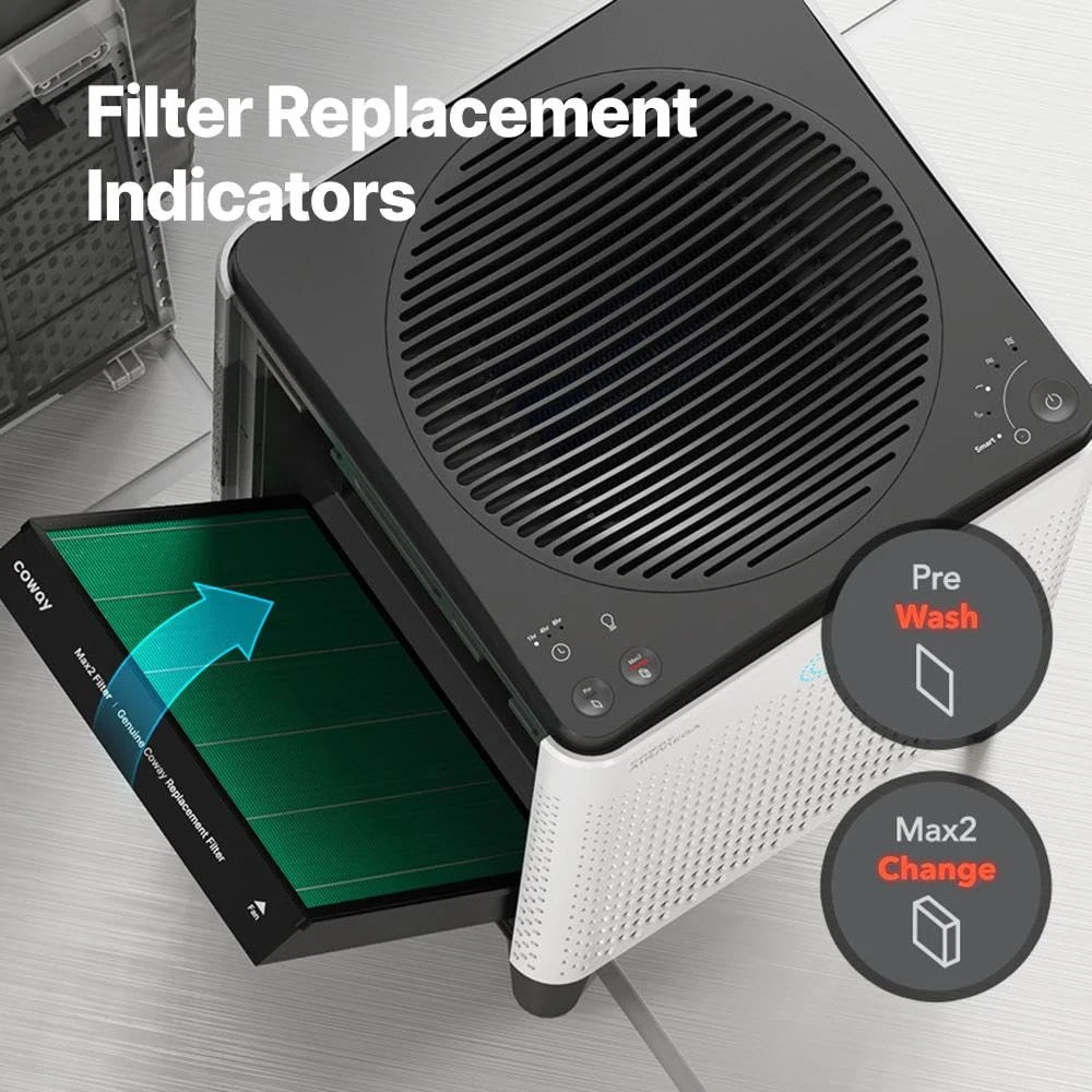 The Coway Airmega Max2 filter-combined activated carbon and True HEPA filter-captures and reduces up to 99.99% of 0.1 micron particles in the air, including pollen, pollutants and other allergens. It also reduces volatile organic compounds by more than 99% and reduces fumes such as NH3 and CH3CHO. Coway Airmega Max2 filter is an all-in-one HEPA filter system that combines True HEPA filter technology with an Activated Carbon filter. True HEPA filter captures and reduces up to 99.99% of 0.01-micron particles in the air. Activated Carbon filter reduces more than 99% of odor