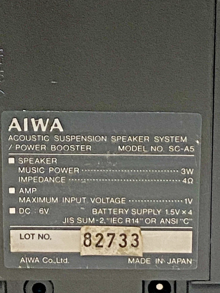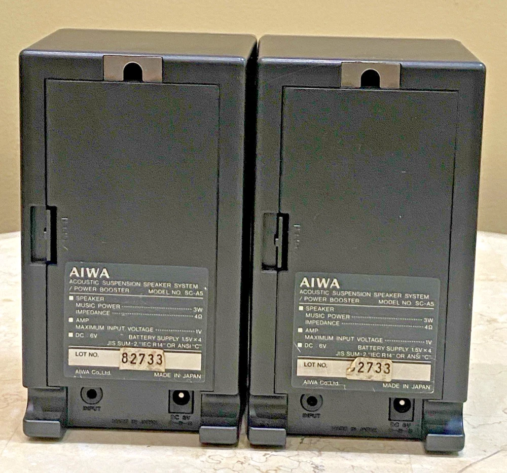 Experience the fusion of rich audio performance and portable design with the AIWA SC-A5 Power Booster Acoustic Suspension Speakers. Crafted in Japan, these speakers boast a sleek silver rectangular shape that's as stylish as it is functional. The unit's durable plastic construction ensures longevity, while the 3.5 mm jack allows for easy connection to a wide range of audio devices. With a wired connectivity, these speakers are designed for those who appreciate a clutter-free setup. The SC-A5 model from Aiwa, known for their commitment to quality, provides an immersive audio experience without the need for cables or a power adapter, making them an ideal choice for on-the-go listening or as a versatile addition to your home audio system.