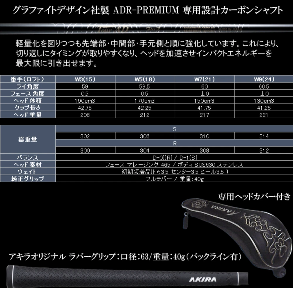 AKIRA ADR PREMIUM 2024 Fairway wood 3W 7W 2set RH graphite Flex Regular HC New