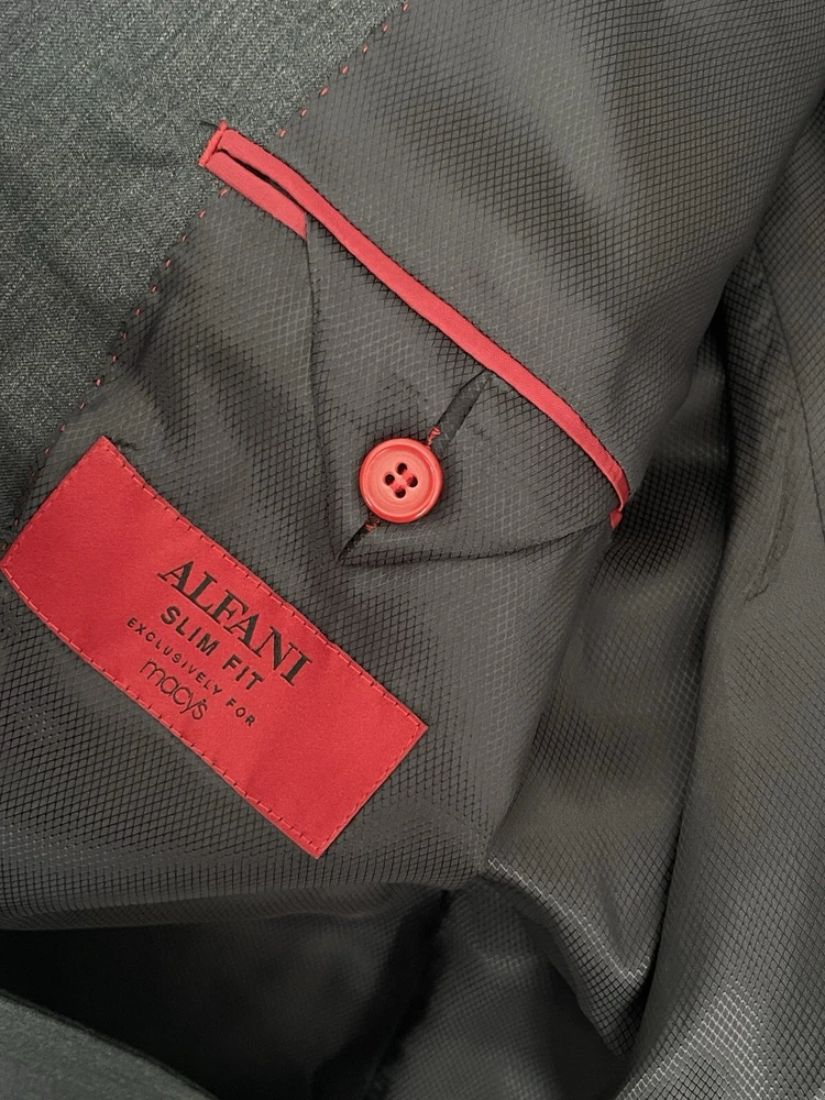 Size Type: Regular Theme: Sports, University, Wedding, Gentleman GQ Handsome Sexy, Basic simple minimalist modest practical comfortable functional, Classy classic core timeless staple traditional polished preppy, Luxe luxury luxurious fabulous exquisite fine Personalize: No Material: 100% Wool Occasion: Business, Casual, Formal, Party/Cocktail, Travel, Wedding Leg Style: N/A Fit: Slim Size: 46 Waist Size: N/A Country/Region of Manufacture: India Vintage: No Department: Men Color: Gray Pattern: Solid Style: Two Button Handmade: No Jacket Vent Style: Double-Vented Chest Size: 46 Garment Care: Dry Clean Only Fabric Type: Woven Features: Inner Pockets Inseam: N/A Season: Fall, Spring, Summer, Winter Jacket/Coat Length: Regular Jacket Front Button Style: Two-Button Brand: Alfani Jacket Cut: Single-Breasted Number of Pieces: 1 Piece Jacket Sleeve Button Style: Four-Button Front Type: Flat Front Jacket Lapel Style: Notch Lining Material: Polyester Type: Suit Jacket