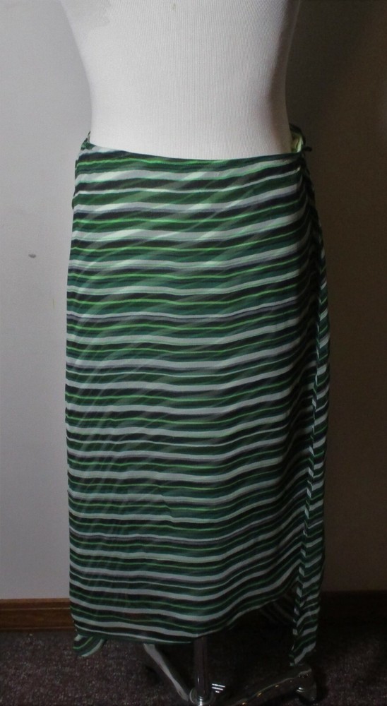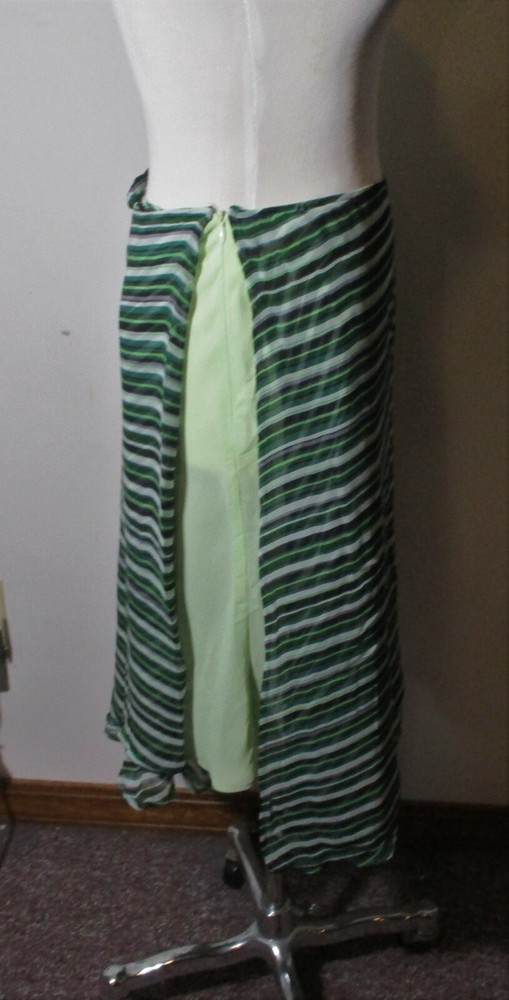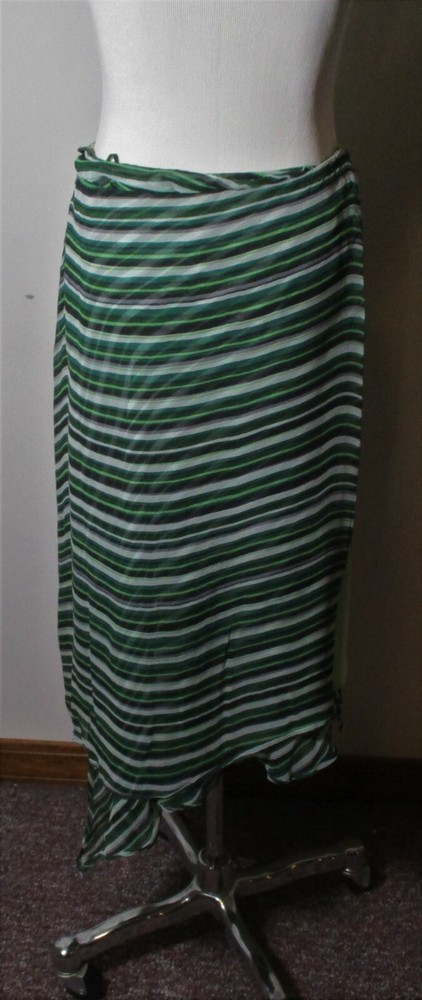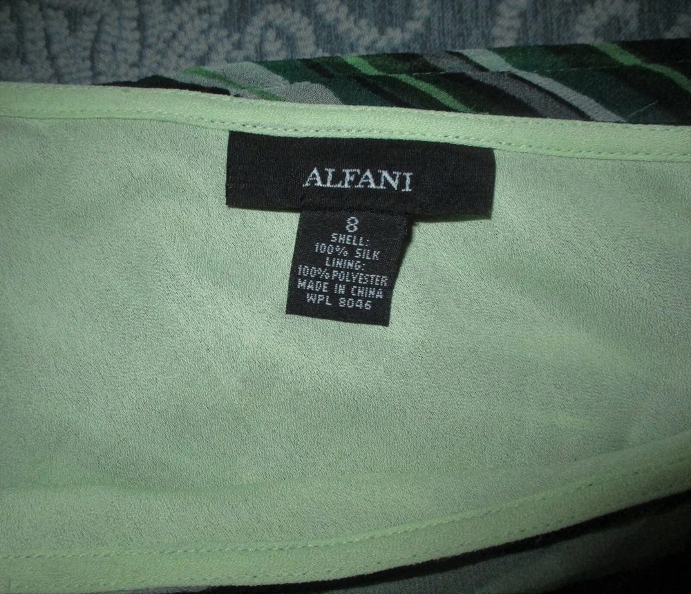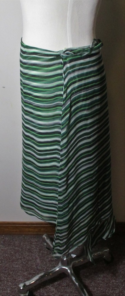 See my EBAY STORE at “SAMTPC53” to view 100’s more of my Women's SKIRTS!!! Combine Shipping: (on multiple items you pay full price on heaviest item first and then HALF PRICE shipping on ALL other clothes items. Women's 100% Silk Wrap Skirt. Brand: ALFANI. Description: women's 100% Silk ALFANI wrap skirt, lining, zipper and clasp on side, see pics. Color: Green. Size: 8 (please see measurements). Measurements: 29" waist, 38" hips, 36" long. Material: 100% Silk. Condition: Very Good condition.