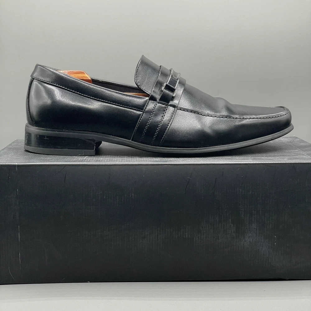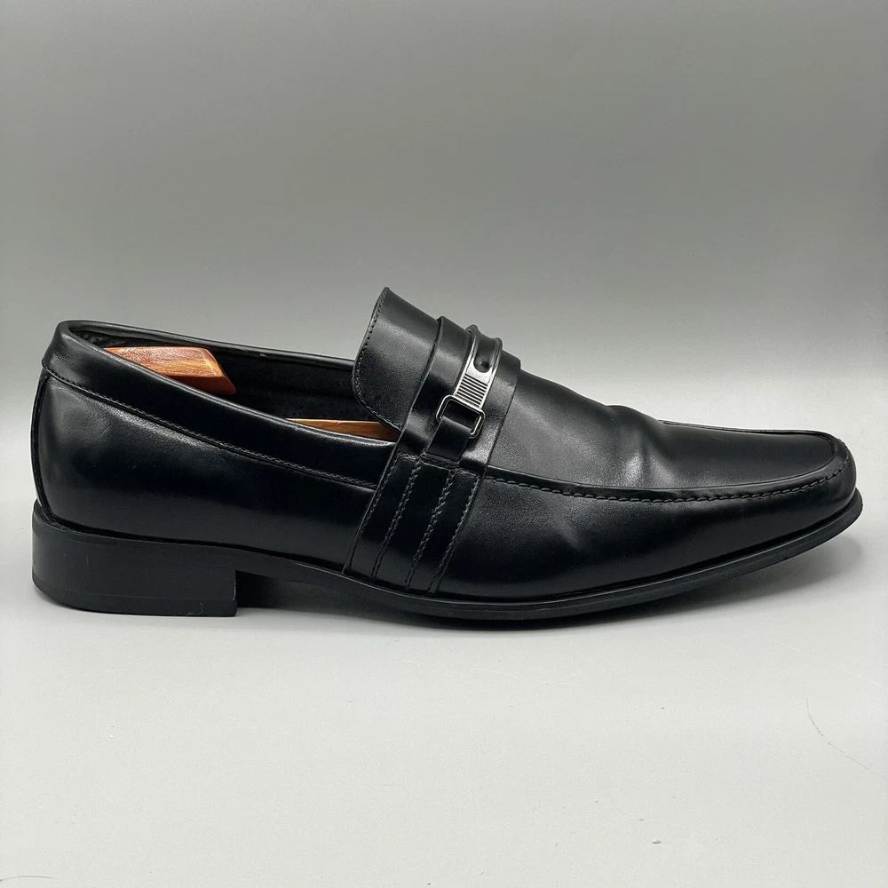 ALFANI Mens Dress Shoes Clicker Black Leather Loafer Slip-On Size 9 M. This is a Pre-Loved and Well Cleaned Pair of Used Shoes and No Major rips or Tears. Shoe box available . Your order will be carefully and safely packed and Shipped within 24 hours from a Smoke Free Home . These are raw images with no edits. You will receive the same shoes that you see in the images . I upload over 10 images from different angles for you to get a better idea about the product . If you have any questions please text me , We can chat :) Make sure to Follow my Store , I’m uploading great shoes everyday for reasonable prices .