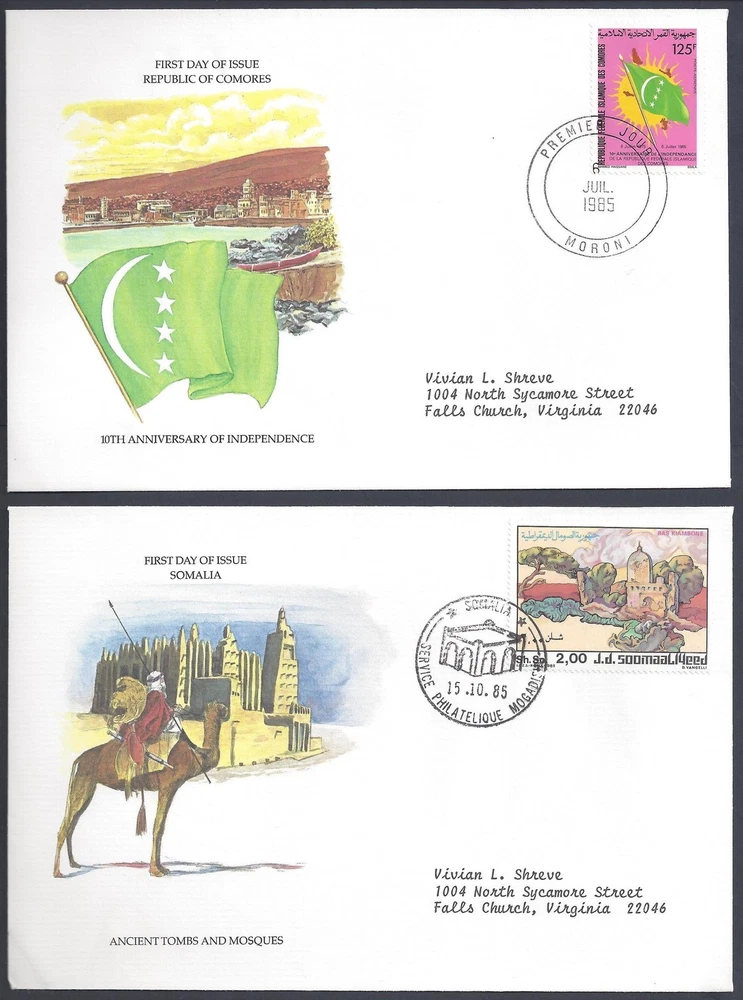 ALGERIA-MOROCCO-SOMALIA-COMORES DJIBOUTI-PAKISTAN-MALAYSIA SRI LANKA 1980's COLLECTION OF 8 FDC's ALL WITH LIMITED EDITION CACHETS PLEASE VISIT MY EBAY STORE : Filatco Stamps BUY 5 ITEMS SHIPPING & REGISTRATION IS FREE INTERNATIONAL BUYERS PLEASE NOTE: EBAY AND PAYPAL REQUIRE REGISTRATION FOR TRACKING INTERNATIONAL SHIPMENTS. THE US POST OFFICE CHARGES $11.50 FOR REGISTRATION BY BIDDING ON THIS ITEM YOU AGREE TO PAY THE REGISTRATION FEE OF $11.50 IF THE VALUE IS $50.00 OR MORE Feel free to ask if you have any questions. PAYMENT WITHIN 7 DAYS IS APPRECIATED . SHIPPING TO DOMESTIC BUYERS: EXCEPT FOR LARGE ITEMS ALL SHIPMENTS ARE INVOICED $1.50 FLAT FEE SENT USPS FIRST CLASS. ITEMS OF A VALUE OVER $50.00 WILL HAVE INSURANCE ADDED TO THE INVOICE. SHIPPING TO INTERNATIONAL BUYERS : EXCEPT FOR LARGE ITEMS ALL SHIPMENTS ARE INVOICED A FLAT FEE OF $2.50. ITEMS OF VALUE OF $ 50.00 OR MORE FOR CERTAIN COUNTRIES BIDDERS MUST CONSIDER PAYING REGISTRATION FEES BEFORE BIDDING . US REGISTRATION FEES ARE $11.50 + 2.50 FOR POSTAGE. PLEASE CONTACT ME AND MENTION THE COUNTRY IF YOU HAVE ANY QUESTIONS ABOUT INVOICE AND SHIPPING COSTS. FEEDBACK : I APPRECIATE YOUR BUSINESS AND MY TOP CONCERN IS TO MAKE SURE YOU ARE 100% PLEASED WITH ANY ITEM YOU PURCHASE. IF YOU HAVE A CONCERN OR A PROBLEM WITH INVOICE, SHIPPING OR ANY ITEM YOU RECEIVED PLEASE CONTACT ME FIRST BEFORE YOU LEAVE ANY FEEDBACK. I GUARANTEE YOU WILL BE 100% SATISFIED WITH THE TRANSACTION. I WILL CERTAINLY LEAVE YOU A POSITIVE FEEDBACK AS SOON AS I RECEIVE YOURS. Powered by eBay Turbo Lister The free listing tool. List your items fast and easy and manage your active items.