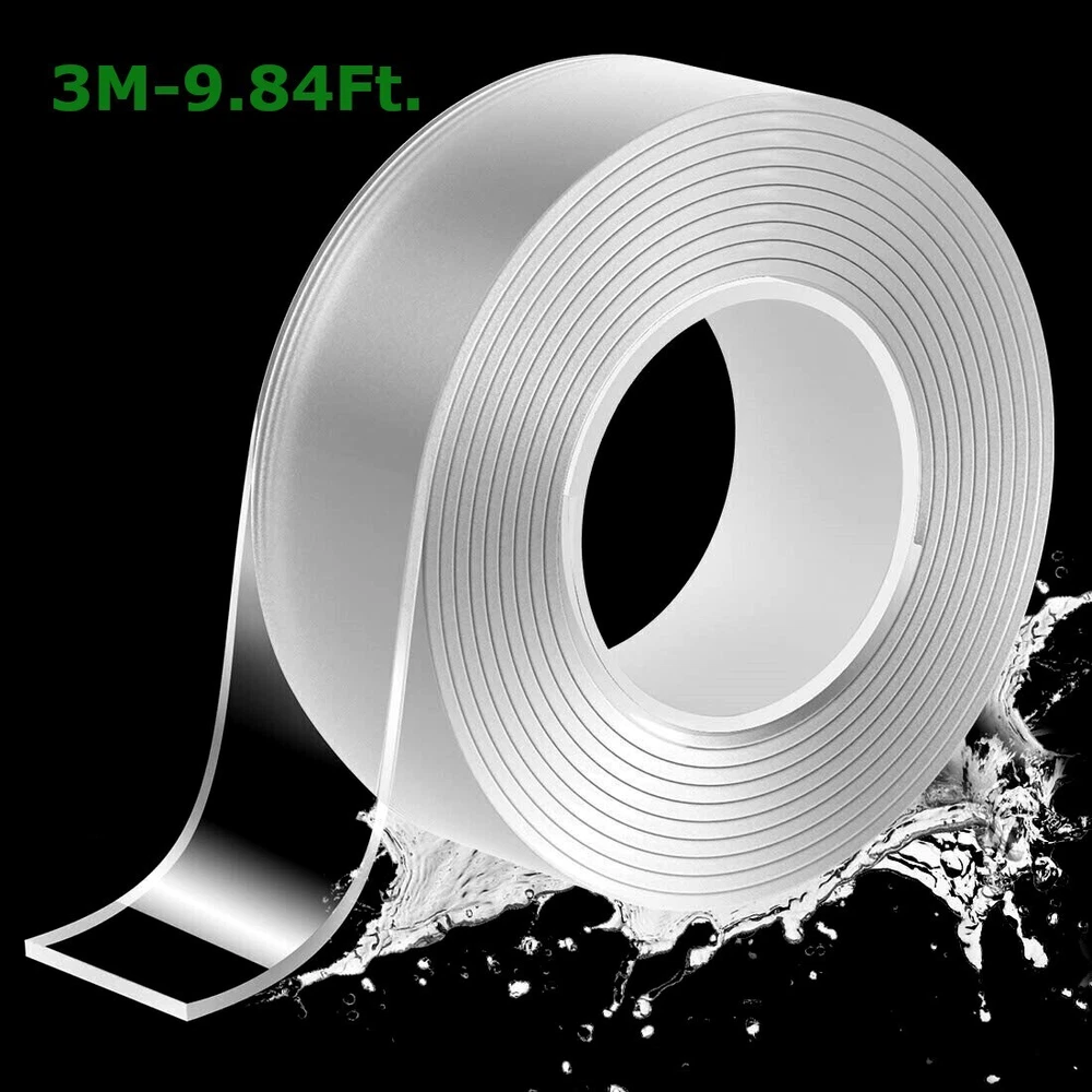 ALIEN NANO GEL TAPE Double Sided Removable Mounting Heavy Duty Adhesive Washable Double-Sided Nano Tape is Highly Transparent and Can Replace Screws, Nails, and Rivets Without Causing Damage to Walls, Glass, Wood, Marble, Tile, Metal, PVC, Jewelry, and Much More after Sticking. With the New Technology of Nanotechnology, It is Reusable, with No Residual Glue, No Damage or Trace Left after Use, and Has a Very Wide Range of Applications. Nano Tape's Unique Nano-Sized Composition Makes it Easy to Reposition and Reuse Many Times, and it Retains 90% of it's Adhesion after being Washed with Water. Nano Gel Tape has Very Good Adhesion, and Can Withstand Up to 8kg or 18lbs per Inch, and Can be Easily Removed Without Leaving Any Residue. For Heavier Items, More Double Layers will be Needed. It Can Be Easily Cut to Any Size or Length you Require. Nano Tape's Adhesive is Washable and Can be Reused More than 600 Times. Specifications: Temperature Range: 32-150 Degrees F. Color: Clear Length: 10ft / Roll Width: 2.92cm Thickness: 1mm ( Material: PU Gel)