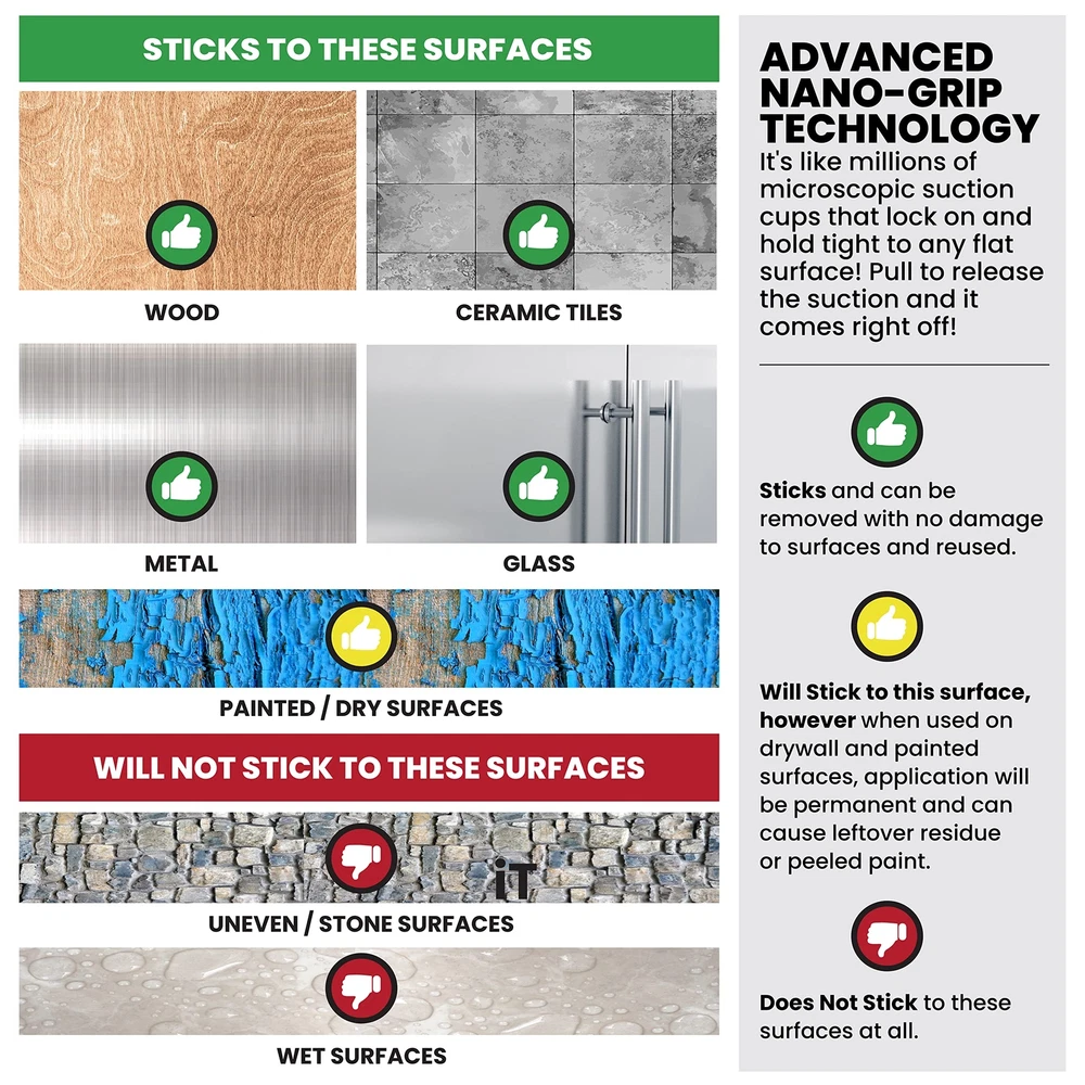 Introducing Alien Tape It's a revolutionary new tape that doesn't use adhesive, but is strong enough to hold an incredible 17.5 lbs on any surface! Alien Tape is the incredible new advanced-grip technology tape that instantly locks anything into place without screws or anchors! It's also reusable β just remove, rinse and reuse! Use it again and it's just as strong! Alien Tape defies gravity, even when it's wet. It's perfect for glass. Use it for heavy towels and it stays in place. When you're done, remove it and there's no sticky residue! The secret is advanced nano-grip technology. It's like millions of microscopic suction cups that lock on and hold tight to any surface! Pull to release the suction and it comes right off! Alien Tape grips to everything, instantly! Hang heavy pictures onto any surface in a flash. Use it outdoors to mount without nails or screws. It's tough and stands up to the elements. Perfect for decorating for the holidays or celebrations. Use it to stop furniture from sliding. It locks into place and won't damage floors! Keep carpets in place or secure your phone while driving. And there's never any residue because there's no glue! π¦π¨π£ππ₯ππ’π₯ πππππ¦ππ’π‘: Double-sided acrylic tape with nano technology provides unparalleled mounting strength. Ideal for adhering to metal, plastic, aluminum, or glass surfaces. ππ‘π¦π§ππ‘π§ ππ’π‘πππ‘π: No curing or drying required; simply press the item against the surface with the tape for immediate mounting. πππ¦π¬ π§π’ ππ£π£ππ¬ & ππ¨π§: This versatile tape is easy to cut to your desired length and simple to apply, making it perfect for various projects. Ideal for crafts, DIY projects, and home repairs. π§π₯ππ‘π¦π£ππ₯ππ‘π§ & πππ¦ππ₯πππ§: Provides transparent and discreet mounting, seamlessly blending into any surface. Suitable for everyday use, helping to secure furniture in place without being noticeable. π©ππ₯π¦ππ§πππ & ππ¨π₯ππππ: With a sturdy 2.0 mm thickness, 3.0 cm width, and 10 feet length per roll, this tape is built to last. Suitable for a variety of uses, it can be applied multiple times while maintaining its effectiveness.