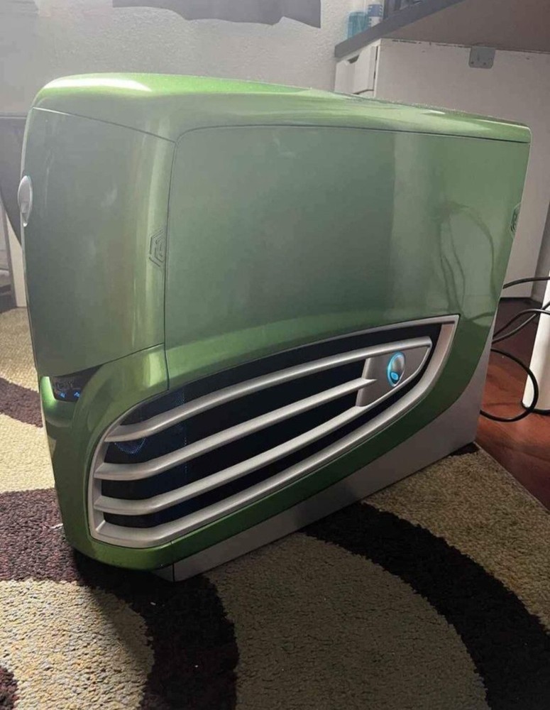 The Alienware Area-51 7500 Desktop Case is a rare and collectible item for fans of the brand. This original case in green color was designed for the Alienware 7500 . Although it does not include a processor or screen size, it is the perfect addition for those looking to complete their vintage Alienware setup or display as a unique piece in their collection.