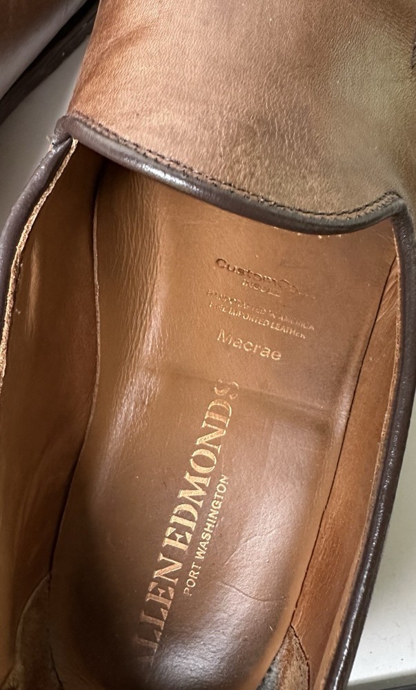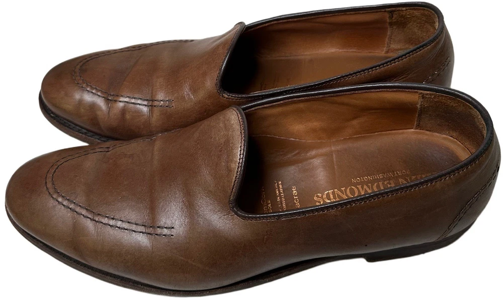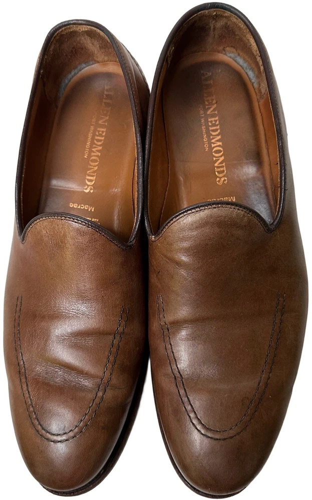 ALLEN EDMONDS MACRAE APRON STITCH LOAFER 11 D Brown LEATHER