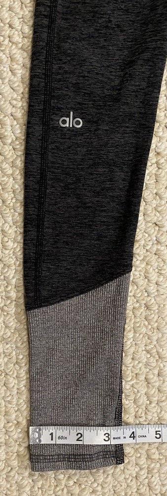 Type: Leggings Size Type: Regular Performance/Activity: Yoga Inseam: 27 in. Material: Polyester Blend Department: Women Pattern: 2 Tone Gray Black Seller Notes: “Excellent Condition” Occasion: Activewear Color: Gray Black Style: Legging Brand: ALO Size: XS