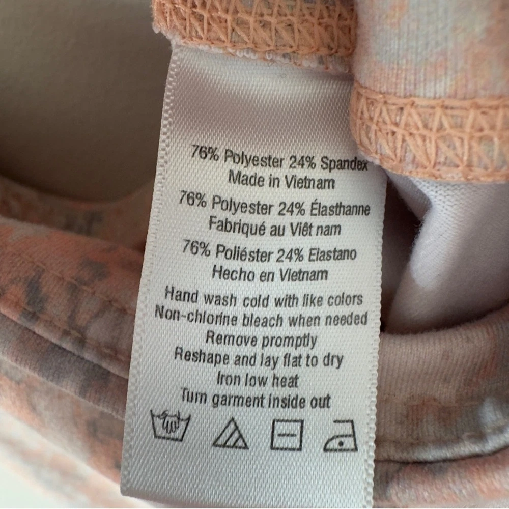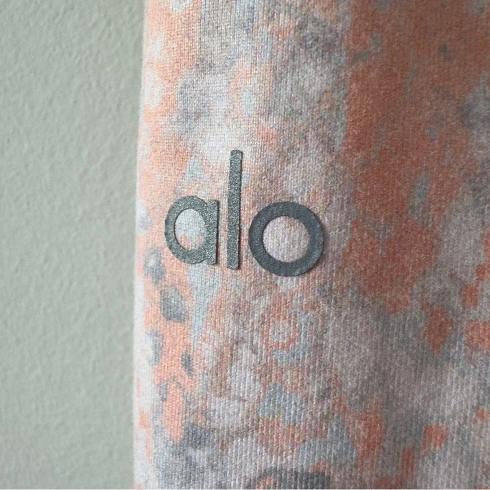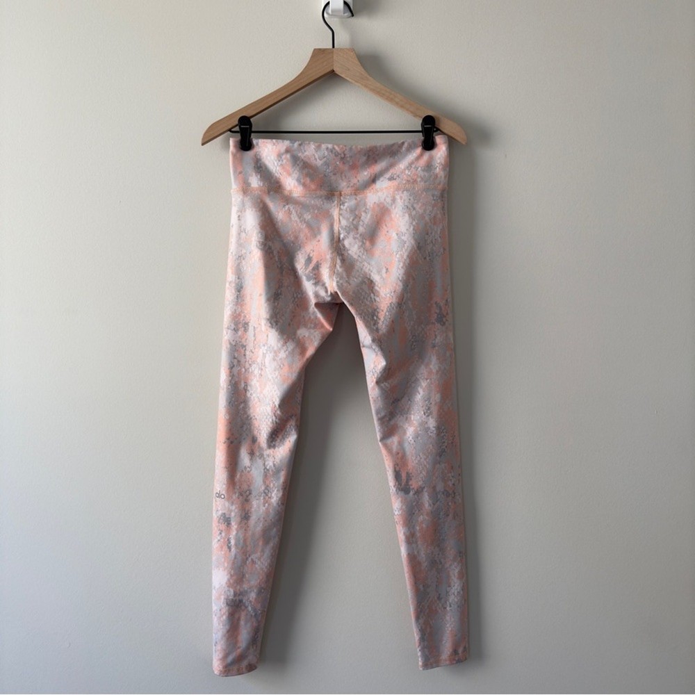 Chic Alo leggings with a peach and gray design. Ideal for yoga or casual outings. Condition: Excellent pre-owned (no flaws) Comes from a smoke-free and pet-free home. Approximate Measurements (Laying Flat): Length: 36 in Inseam: 29.5 in Rise: 9 in Waist: 15 in Leg Opening: 4 in For seller use: 12oz 2004