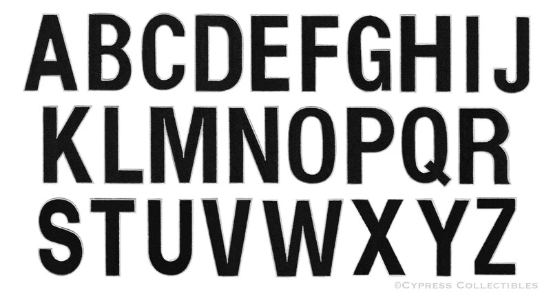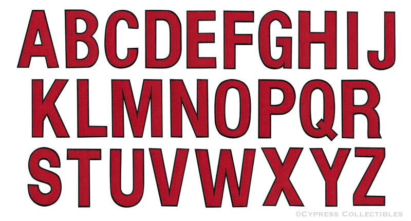 EMBROIDERED IRON-ON PATCHES LETTERS Red, Black or White! EACH LETTER is 2.5-inches TALL! IRON-ON OR SEW IRONED-ON PATCHES WILL NOT COME OFF! TOP QUALITY, DETAILED EMBROIDERY FITS SLEEVES, HATS, JACKETS, VESTS GREAT FOR SCRAPBOOKS AND PHOTO ALBUMS FREE SHIPPING!!!* NO MATTER HOW MANY PATCHES YOU ORDER We always combine shipping! * = Domestic rate only. $4.89 for International Shipping CLICK HERE FOR MORE PATCHES All original photographs, HTML design, and auction template Copyright ©2010 Cypress Collectibles. All rights reserved. We are not responsible for any taxes, duties, or tariffs imposed by the bidder's country.