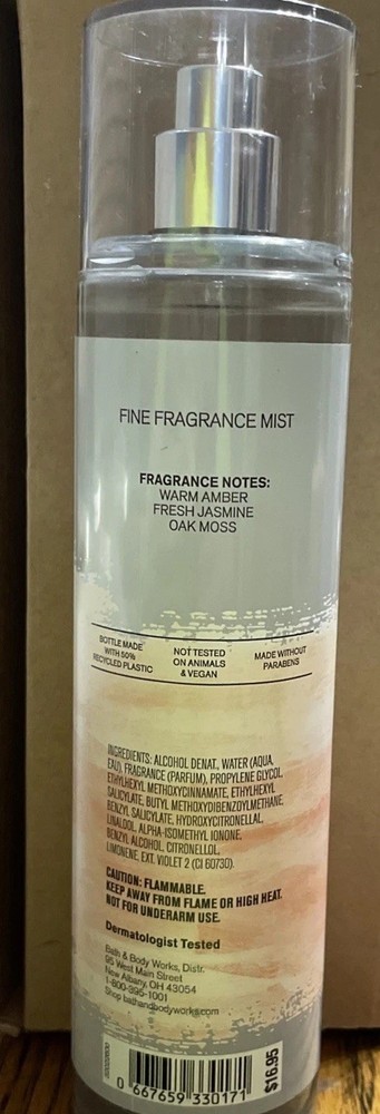 UPC:667659330171Scent:Amber, Jasmine, Amber Blush, Oak MossFragrance Name:Amber Blushgtin13:667659330171Department:WomenBrand:Bath & Body WorksType:Body MistFeatures:Cruelty-Free/No Animal Testing, Paraben-Free, VeganSize Type:Regular SizeMPN:2025 White Barn MistVolume:8 fl ozCountry/Region of Manufacture:United States