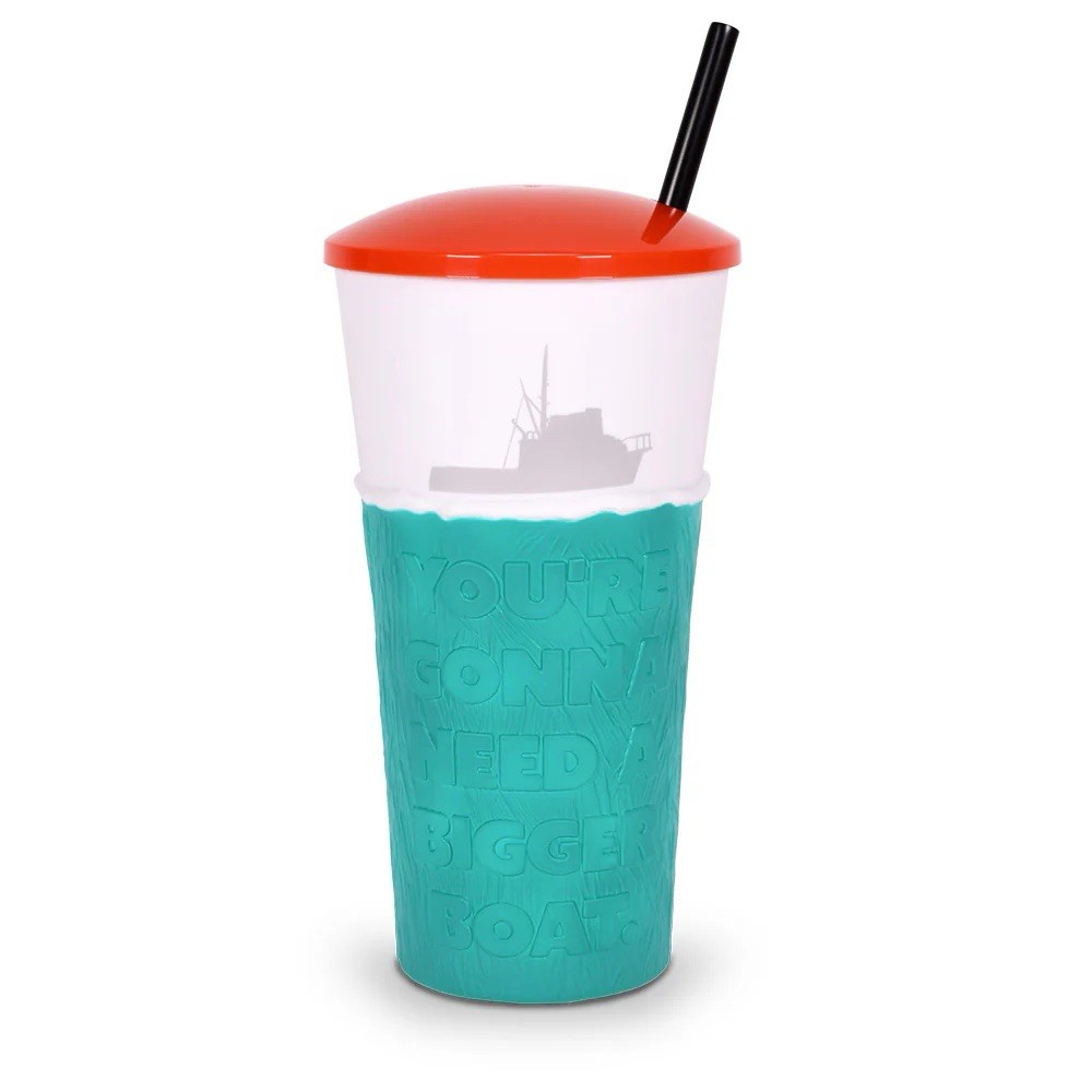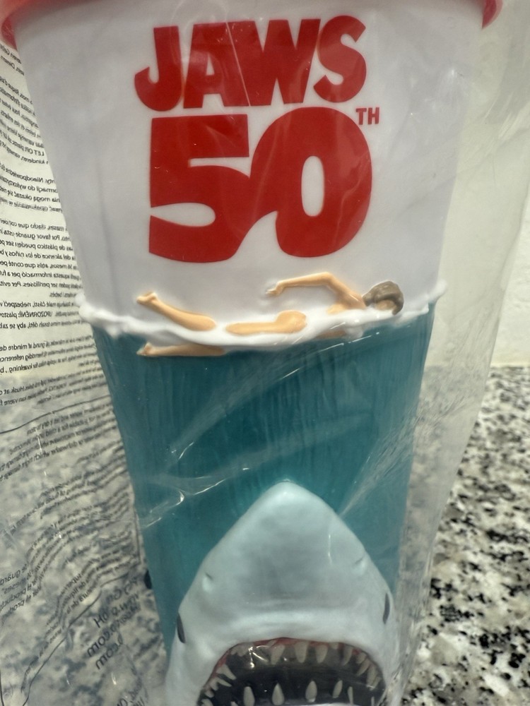 The AMC Jaws 50th Anniversary Special Edition Tumbler Cup is a perfect addition to any movie fan's collection. This 40 oz sealed tumbler cup features the iconic Jaws design, making it a must-have for fans of the classic film. With its original production and Chinese manufacture, this tumbler cup is a unique and special edition item that pays homage to the timeless horror of Jaws. Perfect for enjoying your favorite beverage in style while celebrating the 50th anniversary of this beloved movie.