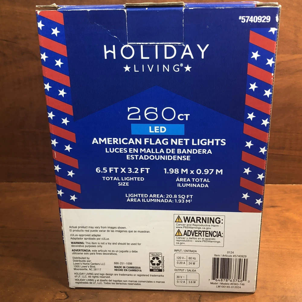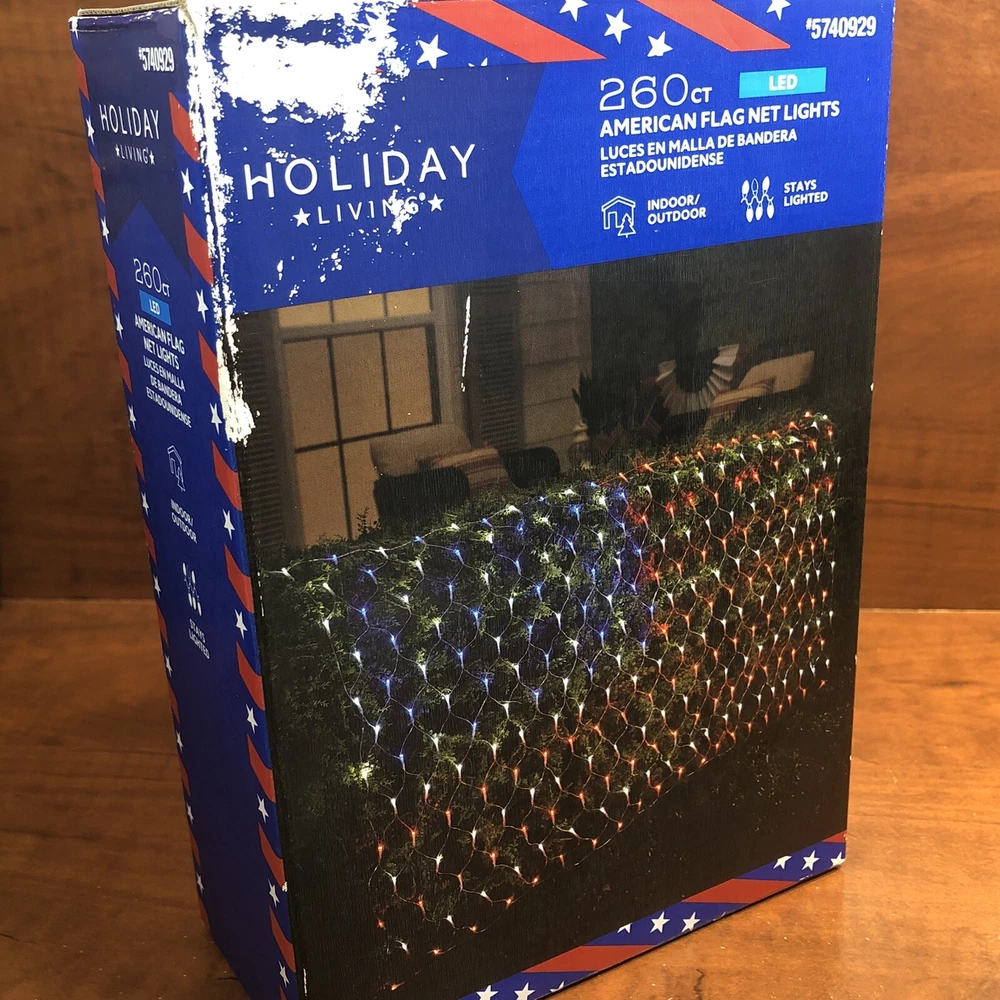 Show off your patriotic spirit with these AMERICAN FLAG LED net lights from Holiday Living. Perfect for the upcoming election, these 260 Ct lights are sure to illuminate your yard with a brilliant display of red, white, and blue. Measuring 6.5 feet in length and 3.2 feet in width, these lights are a nice addition to your nighttime political yard display. Crafted with LED lighting technology, these net lights are both energy-efficient and long-lasting. They are also water-resistant, making them perfect for outdoor use. Please note that these lights come with a California Prop 65 Warning due to potential risk of cancer and reproductive harm. Get ready to celebrate the upcoming election in style with this stunning yard decoration that is also perfect to show support on the 4th of July and/or a veteran’s homecoming. ⚡️Ships in 1 business day. ⚡️ Thanks for shopping in Igor’s Attic. 🎩🕯️📚🧸
