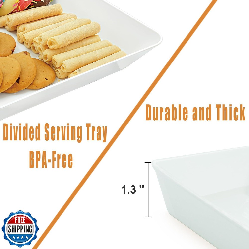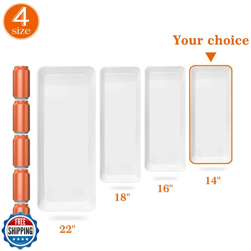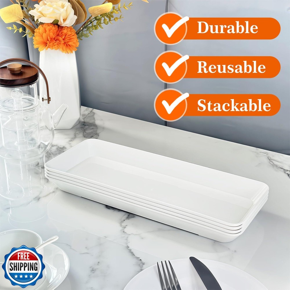 AMGBZT Serving Tray Platter Rectangle, 5 Pcs Long Narrow Food Tray for Veggie Fruit Snack Dessert, Plastic White Food Trays for Party Supplies Display, Rectangular Platters for Serving Food, BPA Free Features Serving Tray Platter Vlue: These serving platters are a practical addition to any dining setup. Measuring 14.5'' x 6'' x 1.3'', the white trays serve as ideal serving dishes and trays. Whether for snacks or main courses, this food tray offers functionality Durable And Reusable: Made of high - density, top - quality plastic, these serving pieces are reusable and BPA - free. The long tray suits large - scale serving, narrow dishes are for condiments, and there's a chip and dip set plus a fruit platter. Multi Function: Entertaining guests is a breeze with these plastic serving platters and bowls. The rectangular lunch tray is practical for daily use, and the charcuterie tray is perfect for snacks. Food display risers add charm to party food setups. Party Supplies Essentials: Elevate your party setup! A large serving tray handles main dishes. Snack & dessert trays offer variety. Use the cookie display stand, place a fruit platter on a food stand, or opt for a tiered serving tray to impress guests Easy To Clean: These white serving platters, eating trays, and plastic food trays are ideal party supplies. They're easy to clean, ensuring hygiene. Candy and cookie dishes in this set are not only practical but also add charm to your party spread. Shipping Free & Fast Shipping: We offer free shipping to most of the USA with a normal delivery time of 3-7 days. However, due to the current situation, additional delivery time (up to 3 weeks) may be required for some items. Alternative Carriers: We may use alternative carriers (e.g., USPS, FedEx, UPS) to ensure your package arrives safely and on time. Due to the use of multiple carriers, we are unable to provide a tracking number automatically. Handling Time: Orders are processed and shipped within 1-2 business days of receiving cleared payment. Shipping Restrictions: Shipping to Alaska, Hawaii, Puerto Rico, Guam, and other US territories may incur shipping charges or delivery restrictions. Please contact us before ordering, or your order can be refunded/cancelled. State Restrictions: Certain items may not be shipped to California due to state regulations. Contact for Tracking Updates: If you require tracking updates or have any concerns about the delivery of your order, please feel free to contact us, and we will be happy to assist you. Return Policy 30-Day Hassle-Free Returns: If you are not completely satisfied with your purchase, you can return the item for free within 30 days of receiving it for a full refund or exchange. Easy Return Process: Contact us, and we will provide you with a prepaid return shipping label and detailed instructions. No Restocking Fee: There are no restocking fees for returns. However, the buyer is responsible for return shipping costs if the return is not due to a seller"s error. Refund Processing: Refunds will be processed within 1 business day of receiving the returned item in its original condition. Feedback Your feedback is extremely important to us. We strive to provide the best products and customer service possible. If you are satisfied with your purchase, please take a moment to leave us a positive review. If you have any concerns or issues with your order, please contact us before leaving negative feedback. We are committed to resolving any problems and ensuring your satisfaction. Contact Us If you have any questions or concerns, please feel free to reach out to our customer support team. You can contact us through the eBay messaging system. We are available Monday to Friday, 9:00 am to 5:00 pm EST, and we will do our best to respond to your inquiry within 24 hours. Thank you for supporting our small family business!