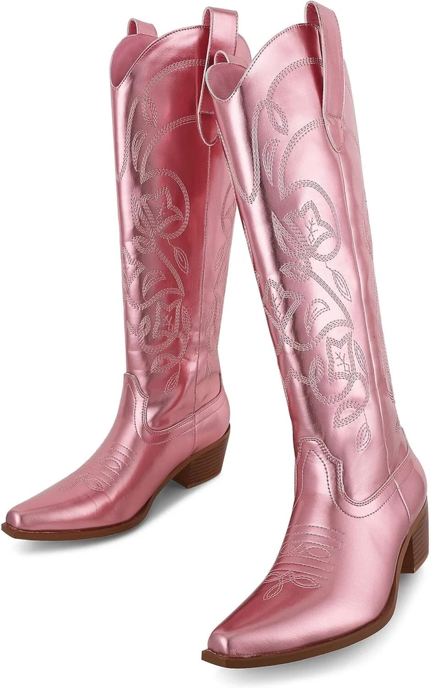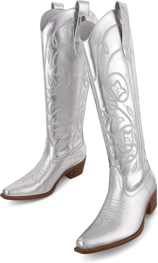 AMINUGAL Cowboy Boots for Women Embroidered Metallic Cowgirl Pull On...