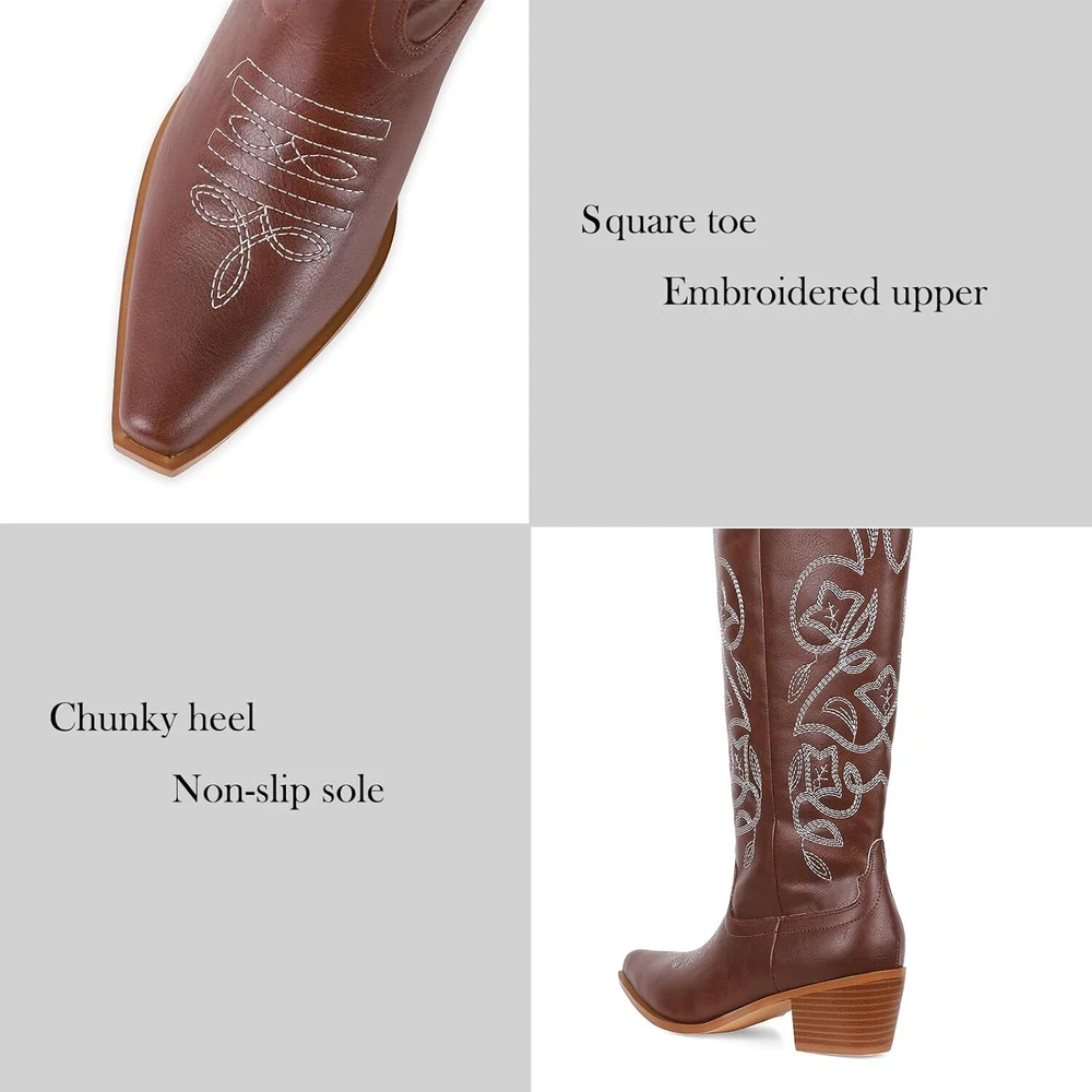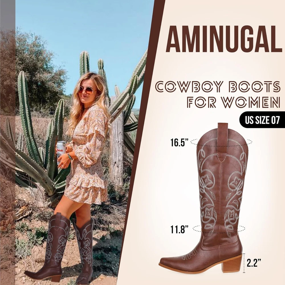 Template AMINUGAL Cowboy Boots for Women Embroidered Metallic Cowgirl Boots Pull On Zipper Knee High Boots Women Comfortable Western Boots Women Pointed Toe Chunky Heel Tall Boots Party Concert Country Boots Product Details Return All returns accepted within 30 days after receiving the item, refund given as money back (no exchanges permitted), item must be in original condition with original packaging. Shipping Please make sure to provide the correct shipping address during checkout as the address cannot be changed after checkout. We are not responsible for any incorrect or undeliverable addresses. All orders are usually shipped within one business day. Your order will be shipped out via one of our participating partners, which include UPS, USPS, FedEx, DHL, among others. We also ship globally through eBay's GSP program. Please ensure the item meets your countries standards!