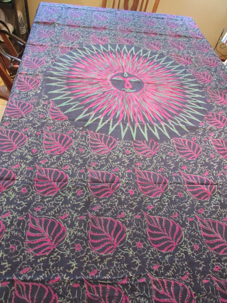 ""LEAF DESIGN COTTON TAPESTRY - BED SPREAD"" - BATIK DESIGN - INDIA - NEW BOHO