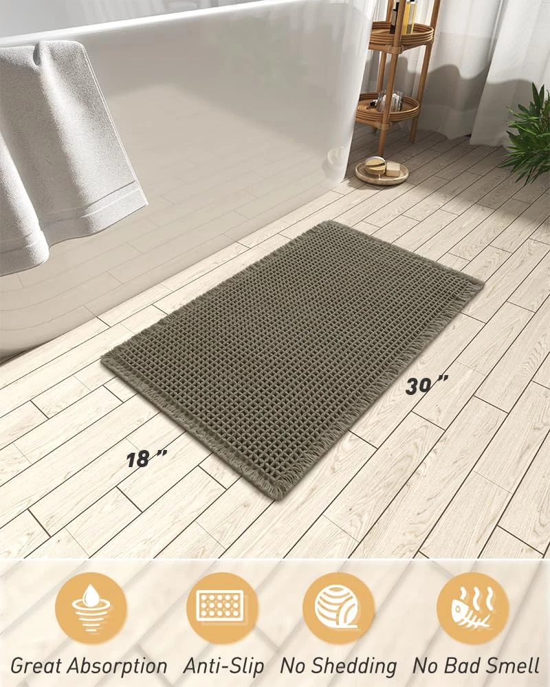 AMOAMI Upgraded Super Absorbent Non-Slip Waffle Bath Mat for Bathrooms