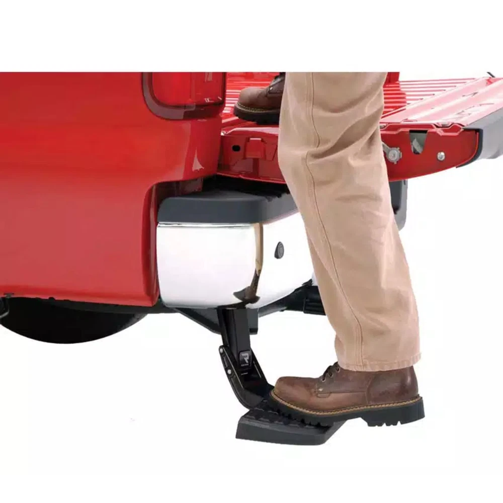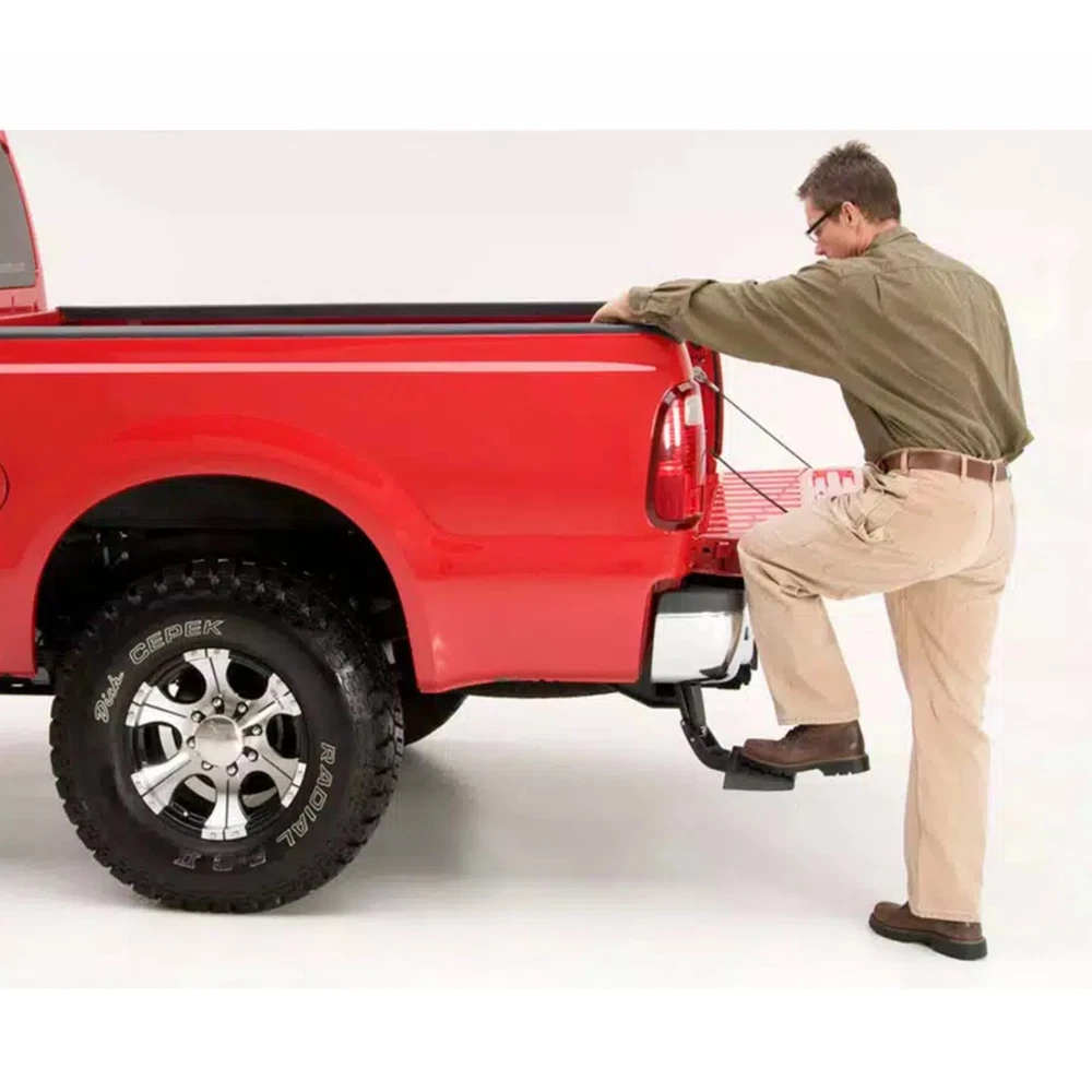 $ImageURL1$ AMP Research BedStep Retractable Flip Down Bumper Step for 07-13 Toyota Tundra PART NUMBER: 75305-01A BRAND: AMP Research DESCRIPTION BedStep™ Rear Step - Driver Side Frame Mounted If you regularly work out of your pickup, you understand the hassle of climbing in and out of the bed to grab tools, equipment, and other essential gear. Rather than twist an ankle or throw out a knee leaping onto the tailgate or stretching onto the bumper, consider investing in the convenience of an AMP Research BedStep™ Bumper Step! The premium, retractable BedStep™ is the ultimate in convenience, providing a wide non-slip step surface to climb in and out of your pickup's bed with ease. The heavy-duty die-cast aluminum frame makes for unparalleled strength, supporting up to 300 pounds, while the glass-reinforced step pad provides a stout foothold. Unlike competitors, the AMP Research BedStep™ Bumper Step offers a convenient retractable design that tucks high and tight against your vehicle's bumper. Whenever bed access is needed, simply kick the step pad downwards for full extension. Whenever you're finished, kick the step pad upwards to lock it into position! The AMP Research BedStep™ is backed with a 3-year limited warranty. Features: High-strength aluminum alloy frame Glass-reinforced non-slip step pad Convenient, retractable design 300 lb. weight rating Simple bolt-on installation on most applications Some drilling may be required 3-year limited warranty Specifications: Step Type: Rear Step Brand: AMP Research Finish: Black Warranty: 3 Year Limited Warranty Material: Aluminum Mounting Location: Frame Mount Weight Capacity: 300 Pounds Step Surface Length: 12 Inch Step Surface Width: 6-1/2 Inch Lighted: No Color/ Finish: Black Powder Coated Material: Aluminum Adjustable: Yes Rotatable: No Logo Design: No Logo With Hitch Pin: Not Applicable Drilling Required: No NOTES: Driver Side Frame Mounted
