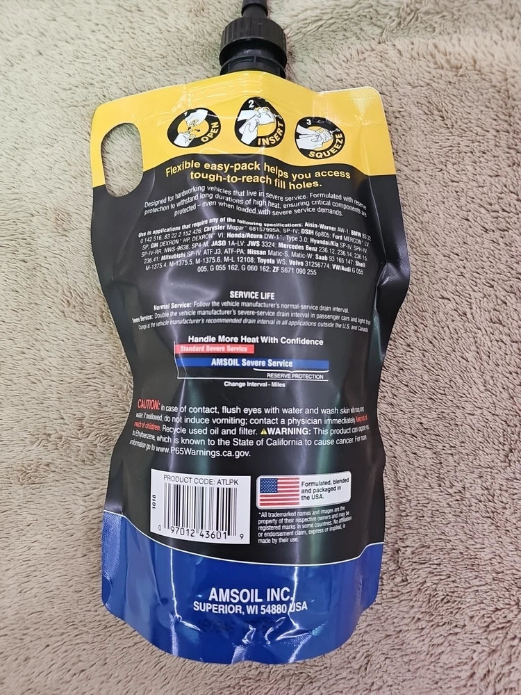 AMSOIL Signature Series Fuel-Efficient 100% Synthetic Automatic Transmission Fluid. (Only sell all quantities of 5 quarts together).