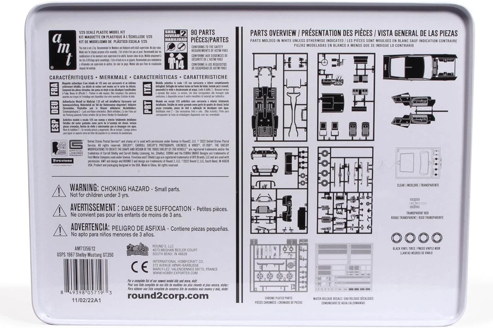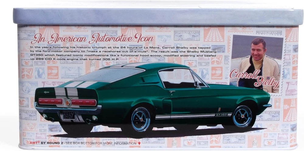 Further Details Title: AMT 1967 Shelby GT350 USPS Stamp Series 1:25 Scale Model Kit Condition: New Description: THE PERFECT PRESENT: Don't know what to get dad for his birthday? Or maybe you have an avid hobbyist or collector in your life. This model kit makes an ideal gift for any occasion! Item Height: 165mm Item Width: 95mm Item Weight: 1.3 poundsg Age Level: 14 years and up Brand: Round2, LLC Character: Box Color: Unpainted Finish: Painted Item Length: 234mm Material: Plastic Style: Box Theme: Car Type: All Dimensions: 9.25 x 3.75 x 6.5 inches MPN: AMT1356/12 A PERENNIAL CLASSIC FOR EXPERIENCED MODELERS: AMT’s 1/25 scale 1967 Shelby GT-350 is the perfect project for muscle car builders. Add it to your collection today! USPS Themed Tin Box: The handsome collectible tin packaging uses USPS imagery throughout including a stunning rendition of the GT-350 on the box lid. FEATURE PACKED: The 1967 Shelby GT-350 is a historical muscle car that stands alone! Build it up right with a Ford 289 V8 engine and all the Shelby touches—custom rear lower pan, chrome wheels, custom taillights and front grille, bucket seats, and more. QUICK SPECS: 1/25 Scale, 123 Parts, 7” long once assembled. Parts molded in white, clear and transparent red, with black vinyl tires. Some parts are chrome plated. Plastic model kit paint and cement required. Skill Level 2. For ages 14+ Missing Information? Please contact us if any details are missing and where possible we will add the information to our listing.