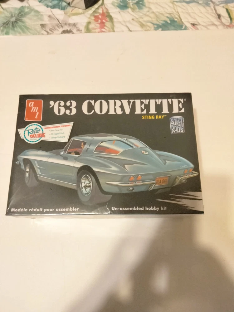 Take on the challenge of building your own classic '63 Corvette Sting Ray with this AMT 1:25 model kit #861. This factory sealed kit includes all original parts, featuring vintage packaging and new decal art. You'll have the option to customize your car with different engine options and optional "American" mag wheels. This un-assembled hobby kit is perfect for skill level 2 and above, recommended for ages 14 and up. The model kit falls under the categories of automotive, models & kits, and toys & hobbies. With its retro deluxe theme, this STREET RODS franchise model kit is a must-have for any car enthusiast or collector.