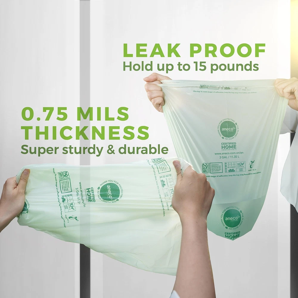ANECO 100% Compostable Food Waste Bags 3 Gallon, 100 Count, Extra Thick Compo...