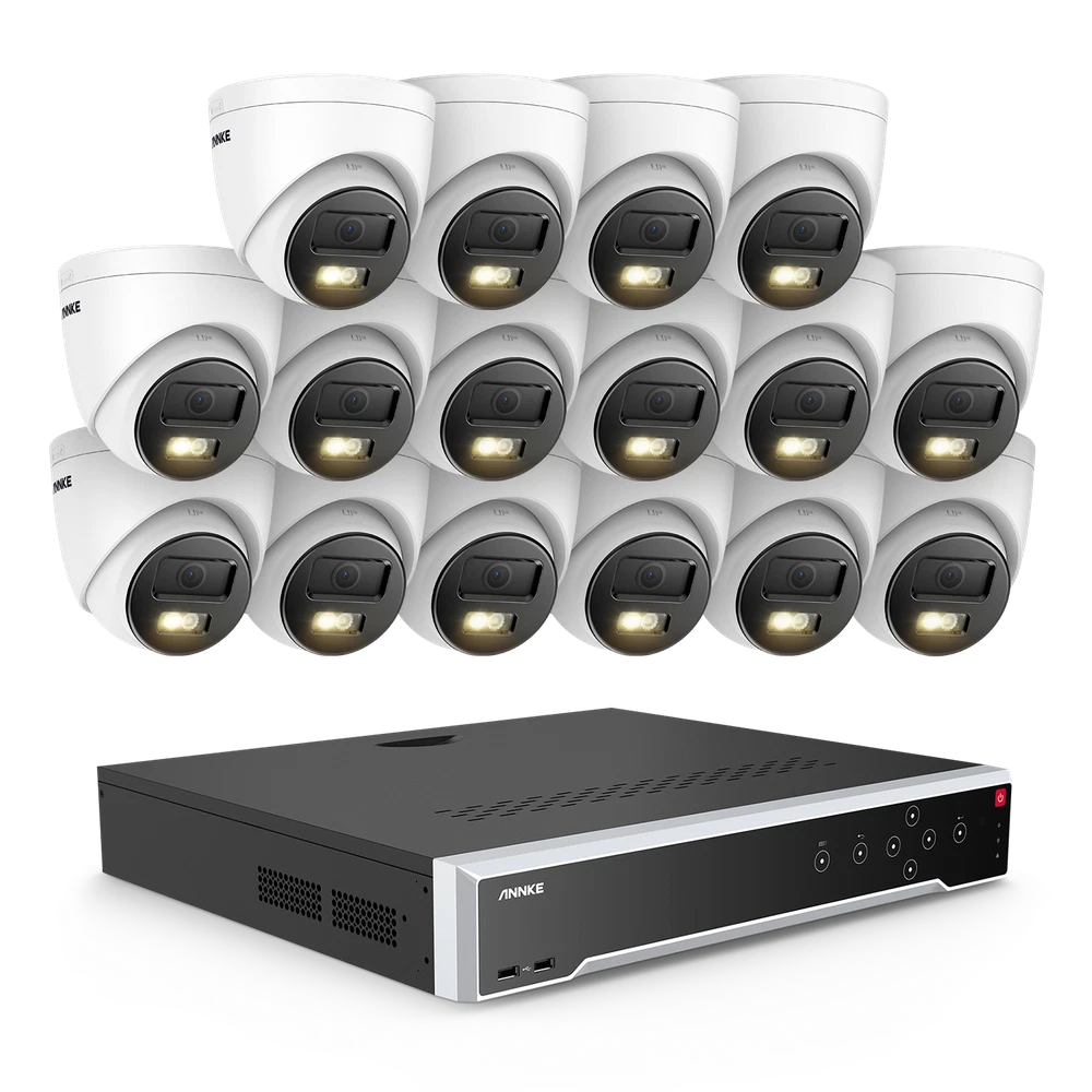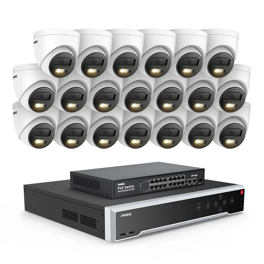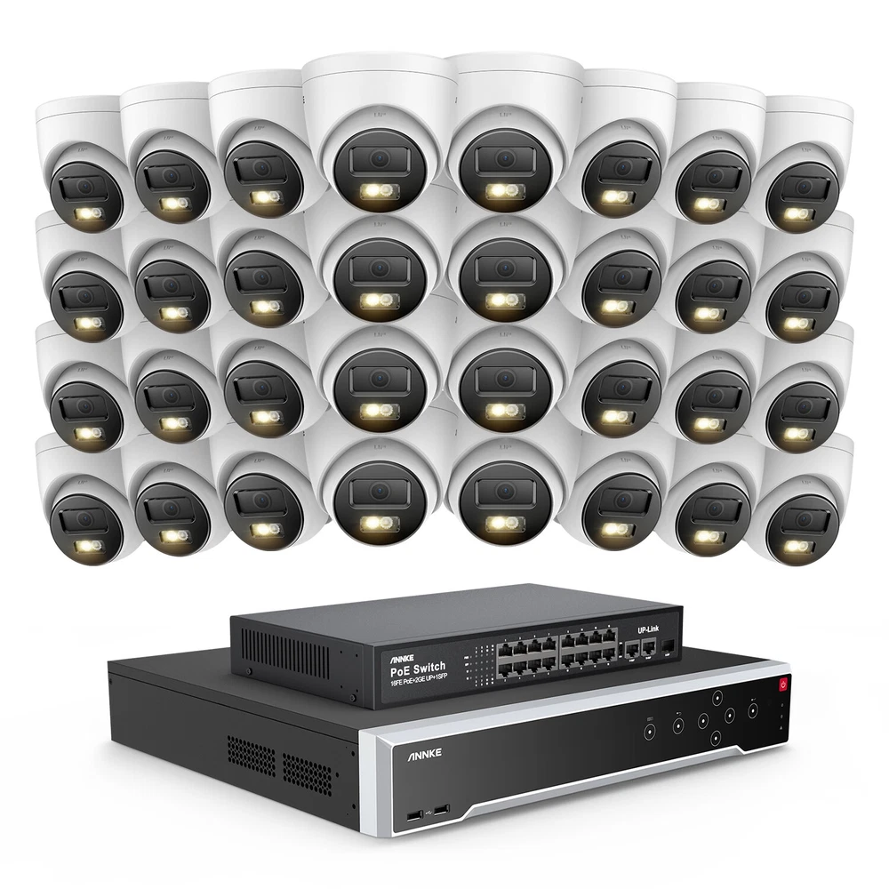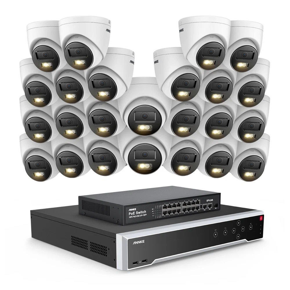 ebay2023 ANNKE H1200 32CH 12MP Smart Color Night PoE Bullet Security Camera System Multi-functional 12MP Surveillance Amazing 12MP Crisp Quality 12MP resolution with the 1/2.7" progressive scan BSI CMOS image sensor, not only delivers crisp quality with finer details but outputs 4096*3072 image scales to match the screen better, not distorted. Upgraded Human & Vehicle Detection Motion detection 2.0 adapts deep learning algorithms, which can detect and extract key objects like humans and vehicles quickly, minimizing APP false alarms pushes. Hi-Fi Audio Recording & Noise-Cancelling The cameras capture images and reveal the whole view of the given area. The built-in mic helps record videos with voice information, achieving high-fidelity noise-cancelling and increasing security coverage further. From Black & White to Color Night Vision With the default IR night vision, human&vehicle triggered, white light on and turns the vision into color; color night vision and IR night vision mode can switch each other. (100ft IR & color night vision distance) Expandable 32 Security Cameras The remarkably powerful internet video recording can connect 32 security cameras, it has built-in 16 PoE ports so that you can link to 16 cameras directly. If you want to connect another 16 cameras, you need to add a PoE switch (not included). Multiple Storage Options You can record videos with the inserted TF card slot, up to 512GB (not included) or with the NVR which built-in 4 SATA interface (support up to 12TB for each HDD, maximum 40TB capacity) for local storage, no monthly cloud storage fees. SD Card: Supported Up to 512GB Micro SD Card (Not Included) HDD: Supported Up to 48TB Hard Disk Drives (HDD Not Included) Real-time Motion Detection You can customize motion detection in every camera, you will get the app alarm notification and email alert with screenshots if there is detected motion, enhancing your security further. EmaiI: Email alert with on-scene snapshots. App: lnstant push notifications right on your mobile device. Optional Recording & Playback With the default 24/7 no-stop and auto-circulate override video recording, you can set up the motion detection recording or schedule recording. As for the playback, instantly playback, smart playback and event playback(motion detection, privacy mask, video loss/masking ) are all supported, you can choose any one of them. Customized Surveillance Areas & Privacy Mask You can customize monitor detection for specific surveillance areas, like garages, and yards. Once motion events are detected in customized zones, you will receive alerts instantly. You can set a privacy mask, then the mask area will be ignored when recording. IP67 & High-Low Temperature Resistance Rated IP67 weatherproof and the cameras are built to brave all weather. No matter torrential downpours and furious wind, or extreme temperatures as high as 140 °F & as low as -22°F. Besides, the camera can work in 1m water for 30 minutes. 120 dB True WDR & 3D DNR The 120 dB true WDR can be used in various scenes, which is not overexposed to darkness but balanced in brightness. Whether it's a backlight or not, you can see it. 3D DNR not only filters out image noise but provides a cleaner image with finer details and clearer night vision. Advanced H.265+ Video Format H.265+ saves up to 75% storage spaces compared with H.264 coding, which not only records ultra-long videos but spreads it faster. 24/7 Video Recording Even Without Internet The PoE security camera system can still work and continue to 24/7 no-stop video recording even without the network. But if you want to perform remote access with smartphones, tablets and laptops, you need to link the internet. NVR Video & Audio Video Compression H.265+/H.265/H.264+/H.264/MPEG4 IP Video Input 32 Channel (Include 16 Channel PoE) Video Output HDMI 1 up to 4K, HDMI 2/VGA up to 1080p, CVBS Audio Input/Output 1/1 RCA Video output mode HDMI1/VGA simultaneous output, HDMI2/VGA independent output Incoming/outgoing Bandwidth 256/256 Mbps Max Playback Capacity 2CH @12MP (20 fps)/4CH @8MP (25 fps)8-ch @ 4MP (30 fps)/16-ch @ 1080p (30 fps) Deep learning 32-ch Human and vehicle targets detection(Need IP camera support) IP video input 32 MP/24 MP/12 MP/8 MP/6 MP/5 MP/4 MP/3MP/1080p/720P *:After ultra HD resolution mode is enabled, the NVR supports up to 4-ch 32 MP/24 MP IP video inputs. Max Playback Channel 16CH Dual stream recording Support Network protocol TCP/IP, DHCP, IPv4, IPv6, DNS, DDNS, NTP, RTSP, SADP, SMTP, SNMP, NFS, iSCSI, ISUP, UPnP™, HTTP, HTTPS Smart Event Line crossing detection, intrusion detection, region entrance detection, region exiting detection, heat map, ANPR, and people counting(Need IP camera support) Hard Drive HDD 4 SATA Interface HDD Capacity Up to 10 TB Capacity for Each HDD(40 TB total) External Interface Network Interface 1, RJ-45 10/100/1000 Mbps self-adaptive Ethernet interface PoE 16, RJ-45 10/100 Mbps self-adaptive Ethernet interface USB Front Panel: 2X USB 2.0; Rear Panel: 1X USB 3.0 Serial Interface 1 RS-485 (Half-Duplex), 1 RS-232 Alarm Input/Output 16/4 General Operating Power 100-240V Power Consumption ≤ 20 W(without HDD and PoE off) Working Temperature 14 °F — 131 °F/-10 °C — +55 °C Dimensions (W X H X D) 440 × 387 × 75 mm ( 17.3"× 15.2" × 3.0") Weight (Without Hard Disk) ≤11 lbs. (5 kg) Camera Camera Image Sensor 1/2.7" Progressive Scan CMOS Video Compression Main stream: H.265+/H.265/H.264+/H.264 Sub-stream: H.265/H.264/MJPEG Max resolution 4096*3072(12MP) Audio Compression G.711ulaw/G.711alaw/G.722.1/G.726/MP2L2/PCM/AAC-LC Main Stream 50 Hz: 10 fps@4096*3072, 12.5 fps@(3840*2160, 3200*1800, 2688*1520, 1920*1080, 1280*720) 60 Hz: 10 fps@4096*3072, 15 fps@(3840*2160, 3200*1800, 2688*1520, 1920*1080, 1280*720) Sub Stream 50 Hz: 12.5 fps (1280*720, 640*480, 640*360) 60 Hz: 15 fps (1280*720, 640*480, 640*360) Video Bitrate 32 Kbps ~ 16 Mbps Lens 2.8 mm Audio Input Built-in Microphone, record with audio Angle of Vie