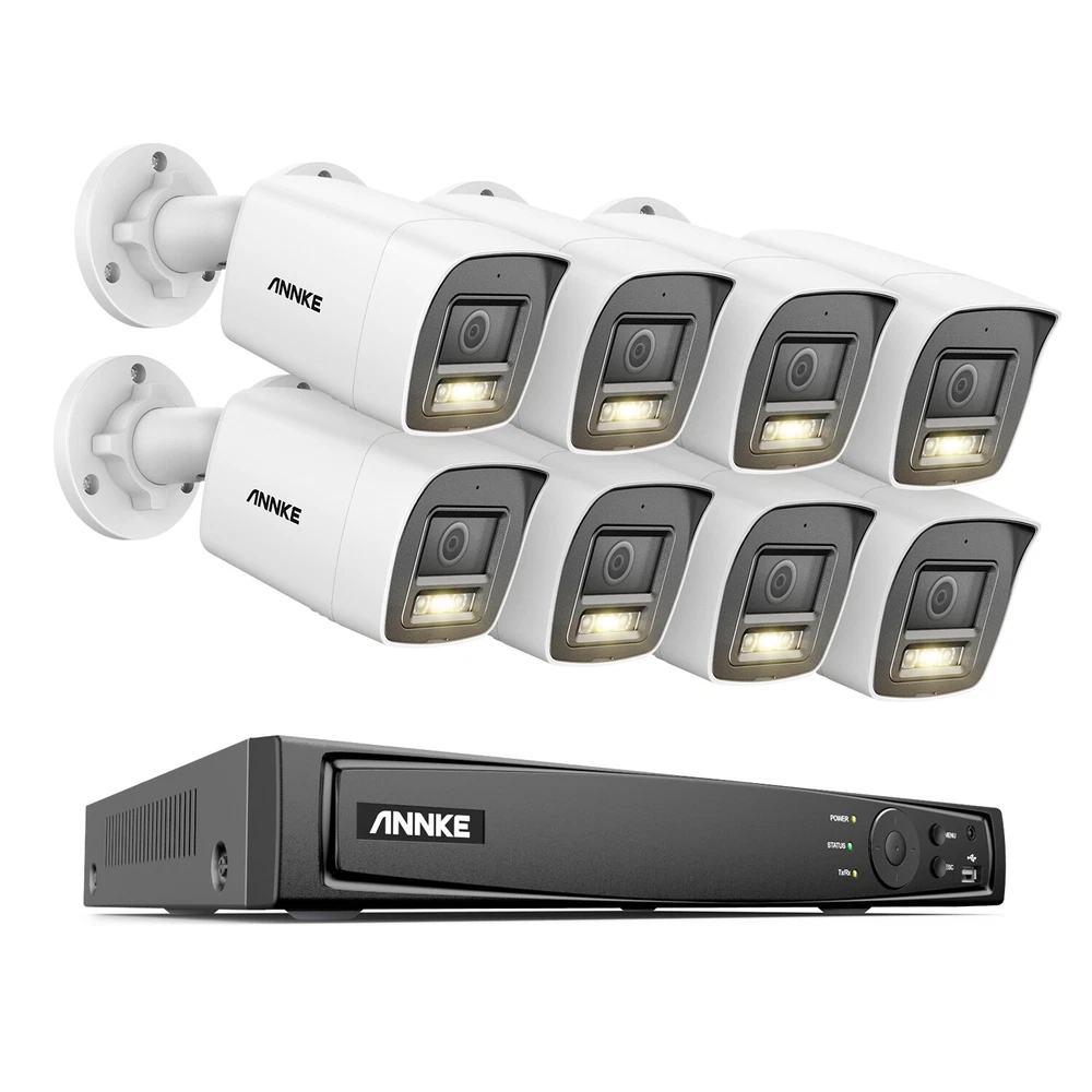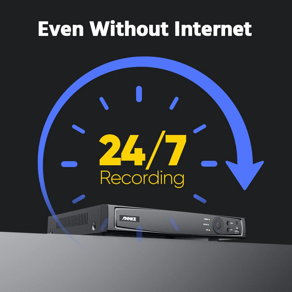 ANNKE Home Surveillance 1080P TVI Camera System 5MP TVI Camera System 4K TVI Camera System 5MP POE Camera System 4K POE Camera System 12MP POE Security Camera Kits Wireless IP Camera System SANNCE Home Surveillance 1080P TVI Camera System 1080P ColorVu Camera System 5MP TVI Security Camera System 3MP POE Camera System 5MP POE Camera System 8MP POE Camera System Wireless Camera System CCTV Camera DVR/NVR CCTV Accessories POE IP Security Cameras ebay2023 ANNKE H1200 8CH 12MP Smart Color Night PoE Bullet Security Camera System Multi-functional 12MP Surveillance Amazing 12MP Crisp Quality 12MP resolution with the 1/2.7" progressive scan BSI CMOS image sensor, not only delivers crisp quality with finer details but outputs 4096*3072 image scales to match the screen better, not distorted. Upgraded Human & Vehicle Detection Motion detection 2.0 adapts deep learning algorithms, which can detect and extract key objects like humans and vehicles quickly, minimizing APP false alarms pushes. Hi-Fi Audio Recording & Noise-Cancelling The cameras capture images and reveal the whole view of the given area. The built-in mic helps record videos with voice information, achieving high-fidelity noise-cancelling and increasing security coverage further. From Black & White to Colored Night Vision With the default IR night vision, human&vehicle triggered, white light on and turns the vision into color; IR night vision and color night vision mode can switch each other. (100ft IR & color night vision distance) Multiple Storage Options You can record videos with the inserted SD card slot, up to 512GB (not included), or with the NVR which built-in 1 SATA interface (maximum support 8TB capacity) for local storage, no monthly cloud storage fees. SD Card: SD Card: Supported UP to 512GB Micro SD Card (Not Included) HDD: Supported UP to 8TB Hard Disk Drives (HDD Not Included) Real-time Motion Detection You can customize motion detection area in every camera, instant app alarm notification push and email alerts will push to your phones once detect motion, enhancing your security. Email: Email alert with on-scene snapshots. APP: Instant push notifications right on your mobile device. Optional Recording and Untrammelled Smart Search & Playback With the defaulted 24/7 no-stop and auto-circulate override video recording, you can choose motion detection recording or schedule recording. For the playback, instantly playback, smart playback and event playback (motion detection, privacy mask, video loss/masking) are all supported. Of course, smart search makes it easier to find what you want in loads of videos. Customized Surveillance Areas & Privacy Mask You can customize monitor detection for specific surveillance areas, like yards, and garages. Once motion events happen in the customized areas, you will get alerts instantly. You can set up the privacy mask, then the camera will ignore the mask area when recording video. IP67 & High-Low Temperature Resistance Rated IP67 weatherproof and the cameras are built to brave all weather. No matter torrential downpours and furious wind, or extreme temperatures as high as 140 °F & as low as -22°F. Besides, the camera can work in 1m water for 30 minutes. 120 dB True WDR & 3D DNR The 120 dB true WDR can be used in various scenes, which is not overexposed to darkness but balanced in brightness. Whether it's a backlight or not, you can see it. 3D DNR not only filters out image noise but provides a cleaner image with finer details and clearer night vision. Advanced H.265+ Video Format H.265+ saves up to 75% storage spaces compared with H.264 coding, which not only records ultra-long videos but spreads it faster. 24/7 Recording Even Without Internet The PoE camera can provide 24/7 no-stop video recording even there is no network, if you want to perform remote access with smartphones, tablets and laptops, internet connection is required. NVR Video & Audio Video Compression H.264+/H.264/H.265/H.265+ IP Video Input 8CH PoE Video Output HDMI up to 4K (4096 × 2160), VGA up to 1080p(1920 × 1080) Audio Input/Output 1/1 RCA Incoming/Outgoing Bandwidth 80/80 M ONVIF Protocols Support Max Recording Resolution Up to 12MP(4096 X 3072)@30fps(Frame rate depends on IP camera) Max Playback Resolution Up to 12MP(4096 X 3072)@30fps(Frame rate depends on IP camera) Max Playback Channel 8CH Max Playback Capacity 1-ch@12 MP(4096 X 3072) (30 fps)/3-ch@4 MP (30 fps)/6-ch@1080p (30 fps) Hard Drive HDD 1 SATA Interface HDD Capacity Up to 8 TB Capacity External Interface Network Interface 1, RJ-45 10/100Mbps self-adaptive Ethernet interface PoE 8, RJ-45 10/100 Mbps self-adaptive Ethernet interface, IEEE 802.3 af/at USB interface USB 2.0*2 Smart Function Deep learning Human and vehicle targets detection(Need IP camera support) 4-ch Human and vehicle targets detection(IP camera does not need to support this function but the resolution cannot exceed 4MP) Smart Event Line crossing detection, intrusion detection, region entrance detection, region exiting detection (Need IP camera support) General Operating Power DC 48 V Power Consumption ≤10 W (Without HDD and PoE) Working Temperature '14 °F ~ 131 °F/-10 °C ~+55 °C PoE: Max. 25.5W for Single Port Dimensions (W X H X D) 12.4” X 9.4” X 1.9”/315 X 240 X 48 mm Weight (Without Hard Disk) 2.2 lbs/1 kg Camera Camera Image Sensor 1/2.7" Progressive Scan CMOS Video Compression Main stream: H.265+/H.265/H.264+/H.264 Sub-stream: H.265/H.264/MJPEG Max resolution 4096*3072(12MP) Audio Compression G.711ulaw/G.711alaw/G.722.1/G.726/MP2L2/PCM/AAC-LC Main Stream 50 Hz: 10 fps@4096*3072, 12.5 fps@(3840*2160, 3200*1800, 2688*1520, 1920*1080, 1280*720) 60 Hz: 10 fps@4096*3072, 15 fps@(3840*2160, 3200*1800, 2688*1520, 1920*1080, 1280*720) Sub Stream 50 Hz: 12.5 fps (1280*720, 640*480, 640*360) 60 Hz: 15 fps (1280*720, 640*480, 640*360) Video Bitrate 32 Kbps 锝?nbsp;16 Mbps Lens 2.8 mm Audio Input Built-in Microphone, record with audio Angle of View Horizontal FOV 113°, vertical 
