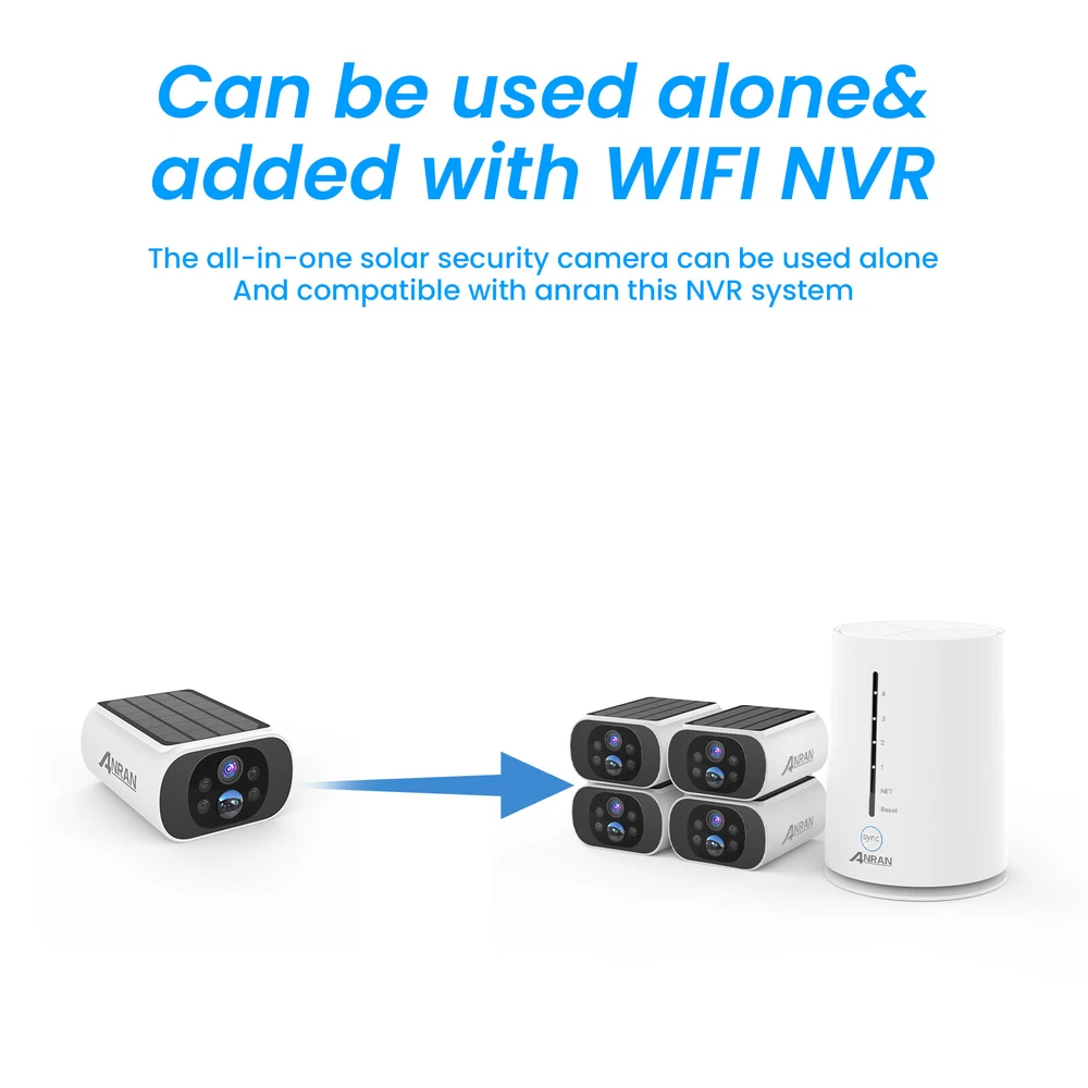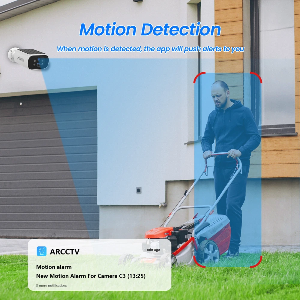 Please Note: Use ARCCTV APP, no work with ANRAN APP Two-way Audio Built-in microphone & speaker, you can see, hear and talk to anyone who appears on the screen of your device even though you are thousands of miles away. Motion Detection&Real-time Security Alert Reminders Receive a security report on you with ARCCTV APP giving you important info ahead of time to take-action. Smart Light Control & Day and Night Clarity Infrared LEDs and an f/1.6 aperture allow more to be seen for excellent night vision.This security camera delivers full-color videos or infrared night vision after sundown. Multiple Alarm Deterrences The camera supports 3 modes of alarms, you can set up light alarms or sound alarms individually, or set up sound&light alarms at the same time. Notice 4MP Ultra HD Detail With 4MP UHD, you'll see the small details of any person that walks onto your property. Built-in Solar Panel for Charging The solar security camera is equipped with a solar panel and rechargeable battery, ensuring a continuous power supply without the need for frequent battery replacements. This feature provides cost savings, convenience, and peace of mind knowing that the camera is always ready to capture footage. No Monthly Fee All recordings will be encrypted and stored in base station without subscription or hidden cost. 64GB of local storage provides up to 2 months of video loop recording. Even if the cameras are damaged or lost, the data remains safe. Base station also provides instant notifications and stable live streaming.data storage full of self-overwriting, no need to manually delete the old data! All-Weather Protection Come rain or shine, the outdoor security camera's IP66 weatherproof rating ensures your property is protected all-year round. Easy to Install Follow the steps to install the camera easily and without any difficulty. Q&A Q1:is this system capable of handling more than 4 cameras? A:The base station has 4 channel, only can add 4 pcs cameras On Dec 7, 2024 at 10:36:19 PST, seller added the following information: