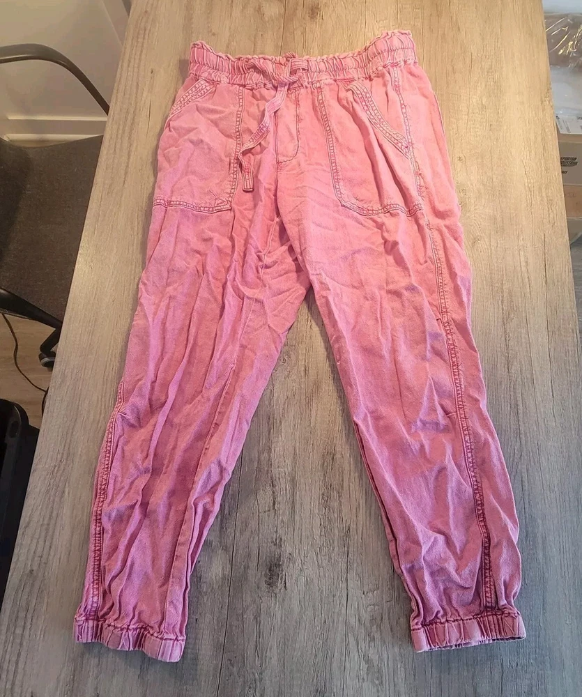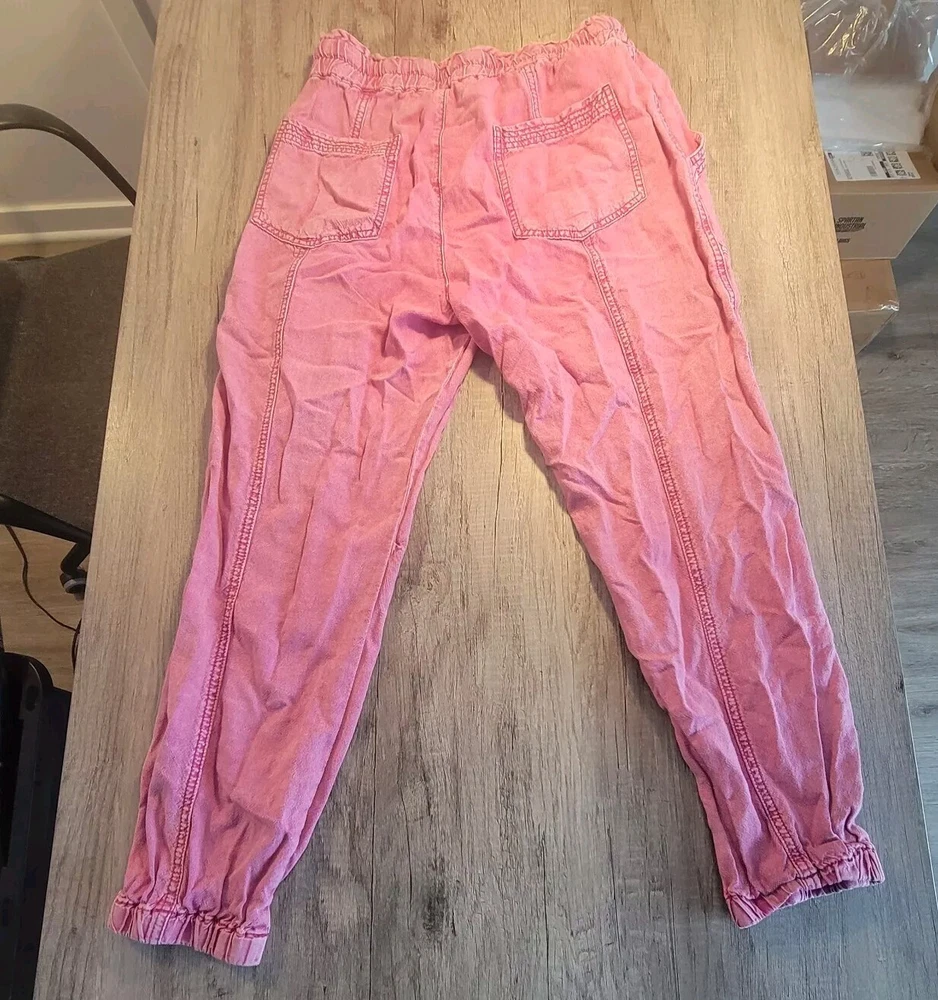 ANTHROPOLOGIE US women’s M Medium Pink Linen Viscose Utility Joggers Pants. Very nice pre-owned condition. Non-smoking home.
