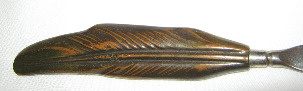Background texture example **** BEING OFFERED IS THIS *** TRULY SPECTACULAR!!, *** XXX RARE!!, AND MUCH HARDER TO FIND!!, *** ANTIQUE FRENCH MADE, *** HEAVY & THICK SOLID BRONZE, DESK ART TOOL, PAPER - BILL - LETTER KNIFE OPENER, IN VERY GOOD TO EXCELLENT ANTIQUE USED AGED CONDITION ( PLEASE VIEW MY PHOTOS ). IT IS FRESH FROM A LOCAL CONNECTICUT ESTATE AND DISPLAYS NICELY!! IT HAS NOT BEEN WASHED, CLEANED, OILED, POLISHED, OR WAXED. IT MEASURES A WONDERFUL HOME - OFFICE DESK ART FRENCH BRONZE FEATHER LETTER OPENER KNIFE DISPLAY SIZE: 8 1/2 " LONG, X 3/4 " WIDE, X 1/4 " THICK. IT IS QUITE HEAVY, SOLID, THICK, STRONG, AND WELL MADE!! IT HAS A FANTASTIC DARK BRONZE AGED PATINA ON IT!! IT HAS NO BREAKS OR STRUCTURAL DAMAGE. IT HAS SURFACE WEAR AS SHOWN. IT IS A TRUE JOY JUST TO SEE, HOLD, FEEL, AND MARVEL AT!! *** IT IS GUARANTEED ANTIQUE FRENCH MADE BRONZE AND IS BEING SOLD AS FOUND / AS SHOWN. *** GOOD LUCK!!
