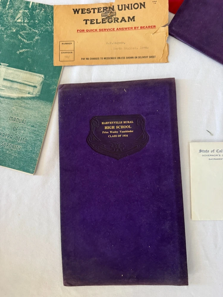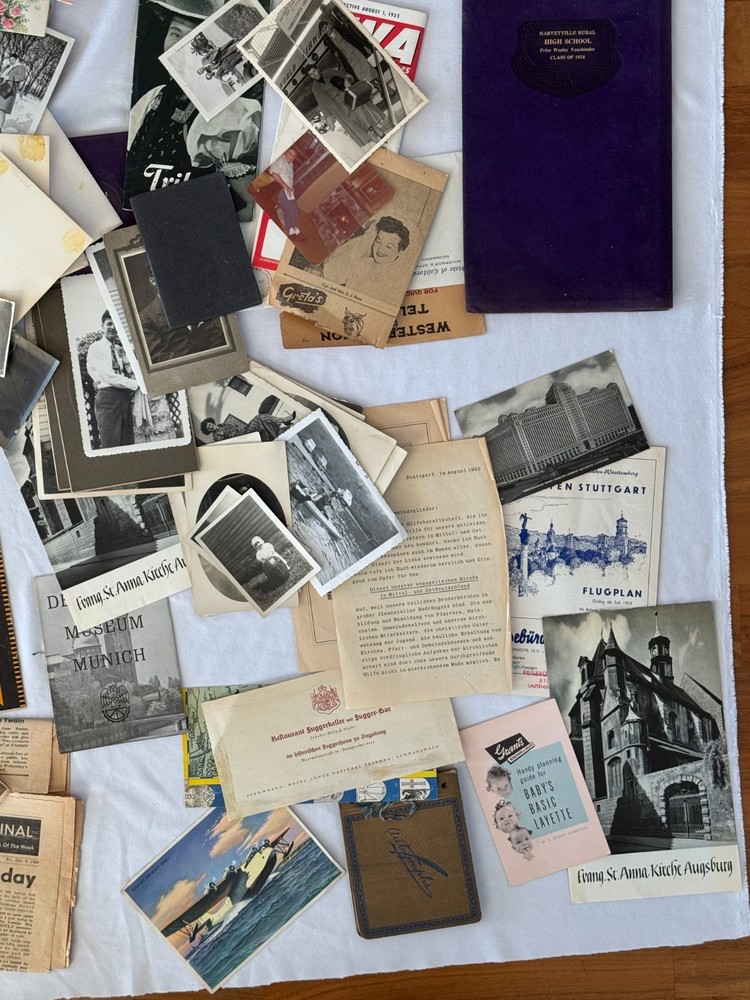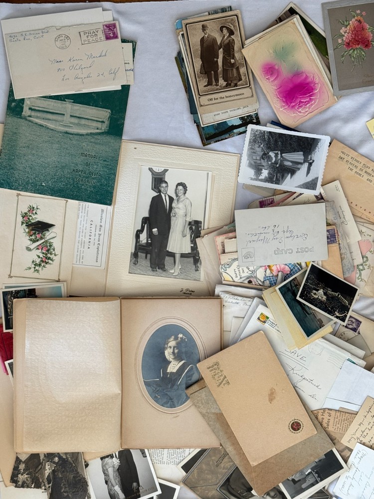 ANTIQUE VINTAGE EPHEMERA LOT 1900's-1950's TRAVEL PHOTOS POSTCARDS LETTERS TELEGRAMS UCLA DIPLOMAS SORORITY VINTAGE EPHERMERA LOT SPANNING EARLY 1900's TO MID-CENTURY. INCLUDES A VARIETY OF ORIGINAL MATERIALS SUCH AS: * PHOTOGRAPHS (BLACK & WHITE, CANDID AND STUDIO} * HANDWRITTEN LETTERS AND POSTCARDS * TELEGRAMS, TRAVEL, BROCHURES, MAPS, MENUS, PROGRAMS * COLLEGE-RELATED ITEMS: UCLA, SORORIITY CARDS, CLASS PHOTOS * HIGH SCHOOL DIPLOMA (HARTSVILLE HIGH, CLASS OF 1931) * ITEMS FROM GERMANY: MUNICH, STUTTGART, AUGSBURG, ETC. * RELIGIOUS AND CULTURAL PAMPHLETS * NEWSPAPER CLIPPINGS, BABY CARE BOOKLET, PHOTO BOOKS MANY ITEMS APPEAR TO RELATE TO A WOMAN'S LIFE JOURNEY, INCLUDING EDUCATION, TRAVEL, FAMILY AND SOCIAL LIFE. SOME DOCUMENTS ARE IN GERMAN. THIS IS A FOUND FAMILY ARCHIVE, PERFECT FOR GENEALOGY, COLLAGE, ART OR HISTORICAL RESEARCH. SOLD AS-IS, CONDITION VARIES, SOME PIECES SHOW AGE, WRINKLING OR EDGE WEAR, ETC. PLEASE ZOOM INTO OUR PICTURES SO YOU CAN SEE MORE DETAILS THANK YOU FOR LOOKING Disclaimers All items are from local estate sales and garage sales around San Diego, Ca. All items sold by us are being described to the best of our ability and with utmost conscientiousness on our part, but please know we are not experts. To avoid any potential oversights, we respectfully request your assistance in thoroughly reviewing the description, photos and asking questions prior to Buying/Bidding. Any damage will be mentioned and included in photographs. Shipping Item(s) will be shipped within 1 business day (Monday-Friday) after payment has cleared. Depending on the fragility of the item, combined shipping may not be available on all items . Please message me to discuss shipping options. Return Policy 100% Satisfaction Guaranteed. We want to ensure that you are completely satisfied with your purchase. If not, then please let us know by messaging us on eBay before leaving any feedback & allow us to work with you to completely resolve any issues that you might be facing with your order. If you feel that you got an item that is different from what you ordered or if it arrived damaged or if you have any problems with the item, please email us & we will be glad to work with you in resolving any issues. All returns must reach us within 30 days after the item was delivered to you. The items must be in their original condition when they were sent to you. We will issue you a refund within 3 business days once the item has been received. Note: Depending on the reason for return, the original cost of shipping may not be included in refund amount.