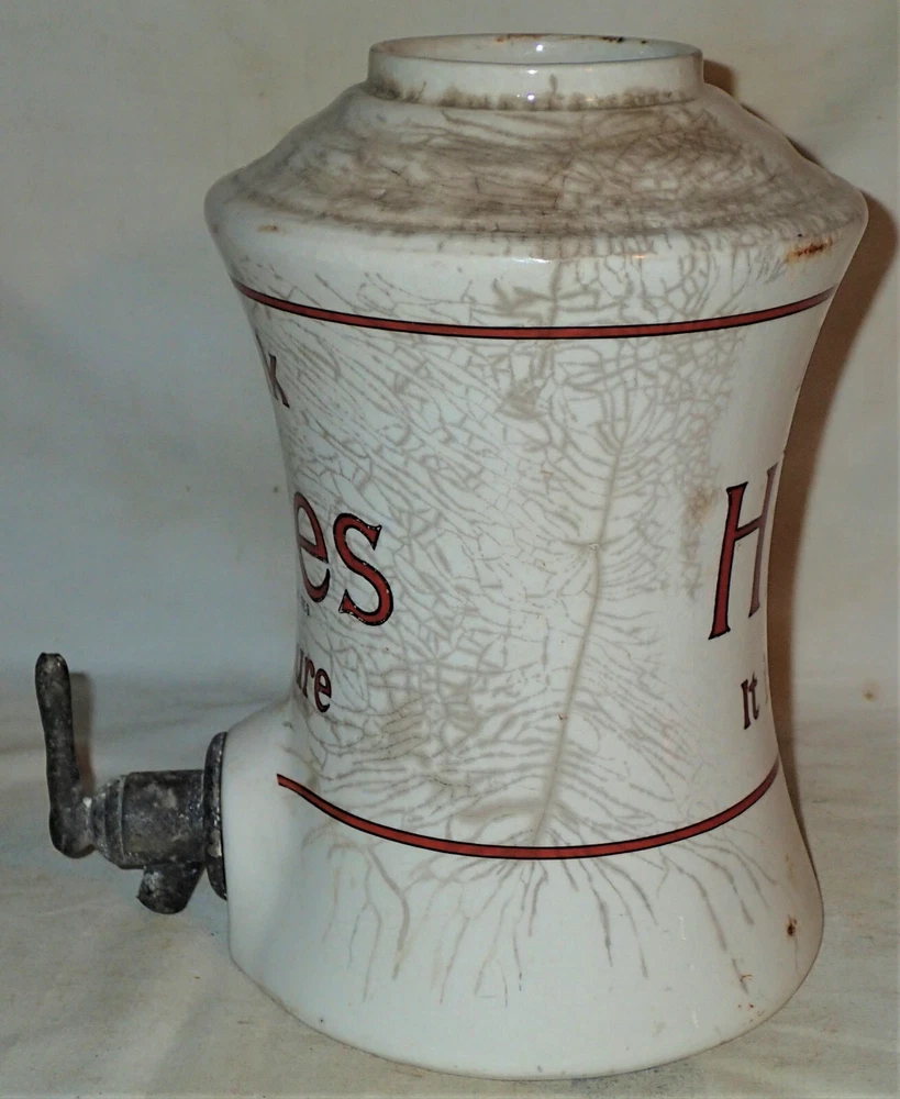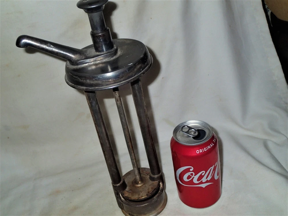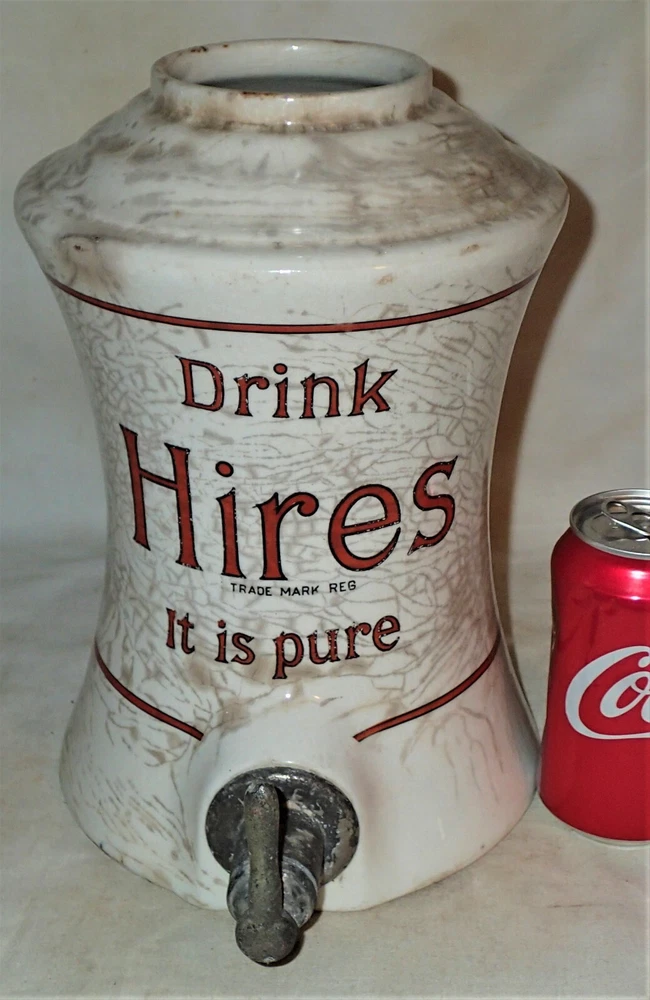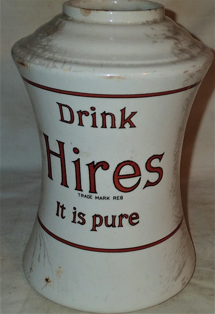 Background texture example *** BEING OFFERED IS THIS *** TRULY SPECTACULAR!!, *** XXX RARE!!, AND MUCH HARDER TO FIND!!, *** ANTIQUE ORIGINAL HEAVY DUTY AND STRONG ICE CREAM SHOP, *** HIRES ROOT BEER COUNTER TOP SODA SYRUP STONEWARE DISPENSER WITH GREAT ORIGINAL ANTIQUE HEAVY CHROMED METAL SYRUP PUMP, IN GOOD TO VERY GOOD ANTIQUE USED AGED CONDITION ( PLEASE VIEW MY PHOTO'S ). IT RETAINS THE ORIGINAL DUST AND DIRT ON IT...., "JUST AS I FOUND IT!!" IT IS EXTREMELY HEAVY, SOLID, STURDY, STRONG, AND WELL MADE ANTIQUE STONEWARE AND VERY HEAVY AND STRONG ANTIQUE SIGNED HIRES ORIGINAL SODA SYRUP PUMP, AS SHOWN!! I'M CERTAIN THAT YOU WILL BE VERY PLEASED TO OWN AND DISPLAY THIS UNIQUE HIRES "NOVELTY" ROOT BEER SODA SYRUP COUNTER TOP DISPENSER!! THE LARGE SIZE PUMP FITS NICELY INSIDE OF THE PORCELAIN SYRUP CONTAINER GIVING IT A GREAT LOOK TO IT!! IT HAS GREAT NOSTALGIA TO IT AND DISPLAYS NICELY!! THE STONEWARE BOTTOM ALONE MEASURES A HUGE DISPLAY SIZE: 14 3/4 " HIGH, X 7 1/4 " WIDE, X 3 1/2 " WIDE TOP OPENING WHERE THE ORIGINAL TOP METAL LID WOULD SIT ( NOT INCLUDED IN THE SALE ). THE ORIGINAL HEAVY DUTY AND STRONG NICELY SIGNED HIRES ANTIQUE CHROMED METAL SYRUP HAND PUMP IS INCLUDED AS SHOWN WHICH MEASURES: 12 1/4 " HIGH, X 3 " WIDE BASE. THE INSIDE TOP LID MEASURES: 3 3/4 ", X 5 1/4 " FROM SPOUT TO BACK LID. THE ENTIRE UNIT MUST WEIGH A VERY HEFTY SEVEN TO TEN POUNDS PRIOR TO PACKAGING!! *** PLEASE FEEL FREE TO ASK ANY AND ALL QUESTIONS PRIOR TO BUYING IT!! IT IS GUARANTEED ANTIQUE AND IS BEING SOLD AS FOUND / AS SHOWN. *** GOOD LUCK!! 09-09-B-2022.