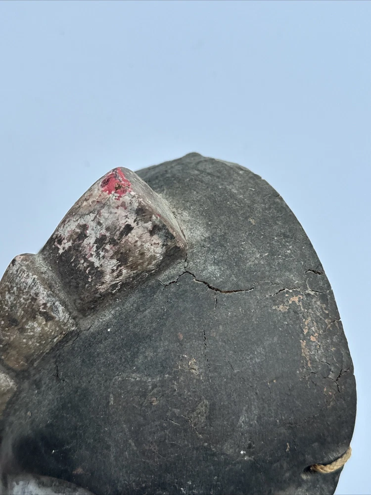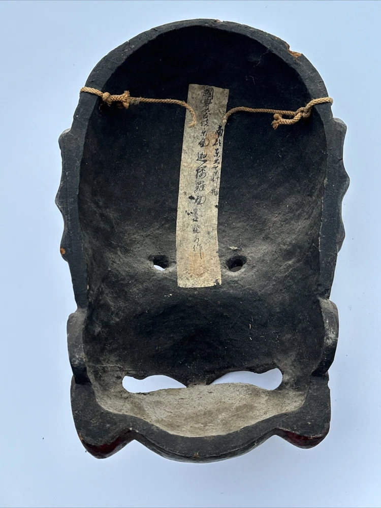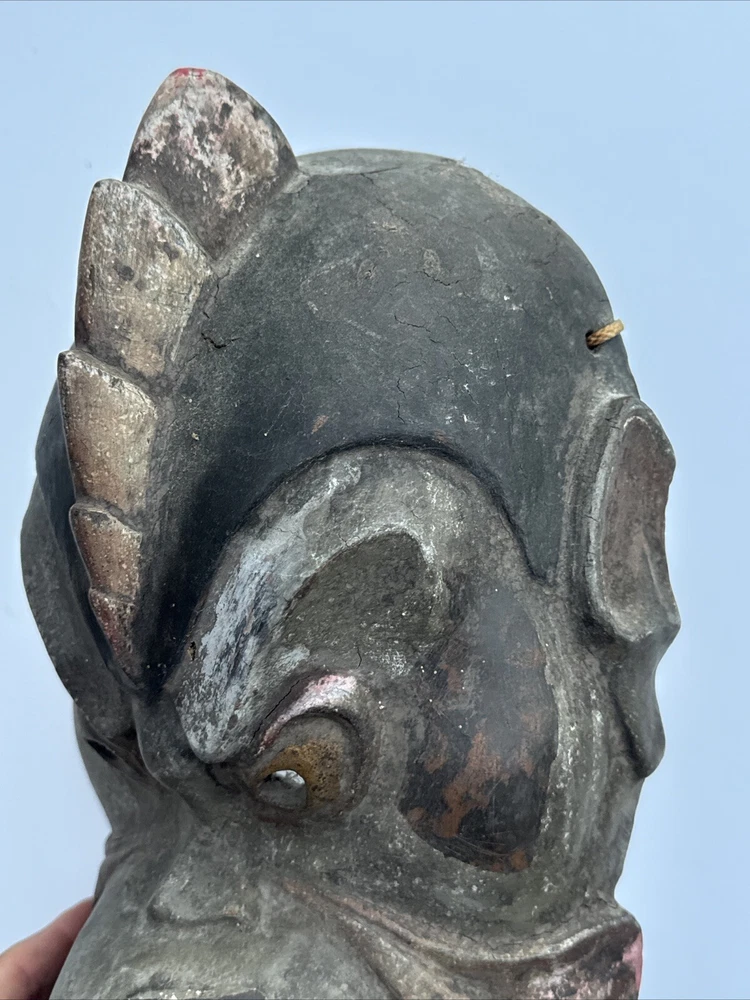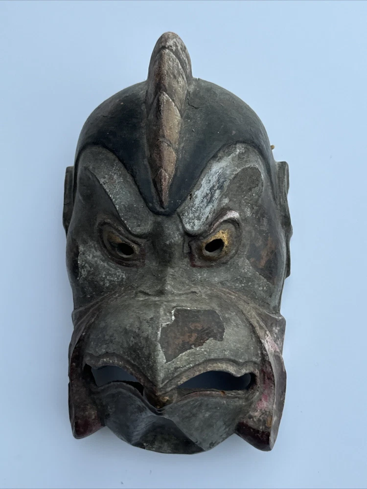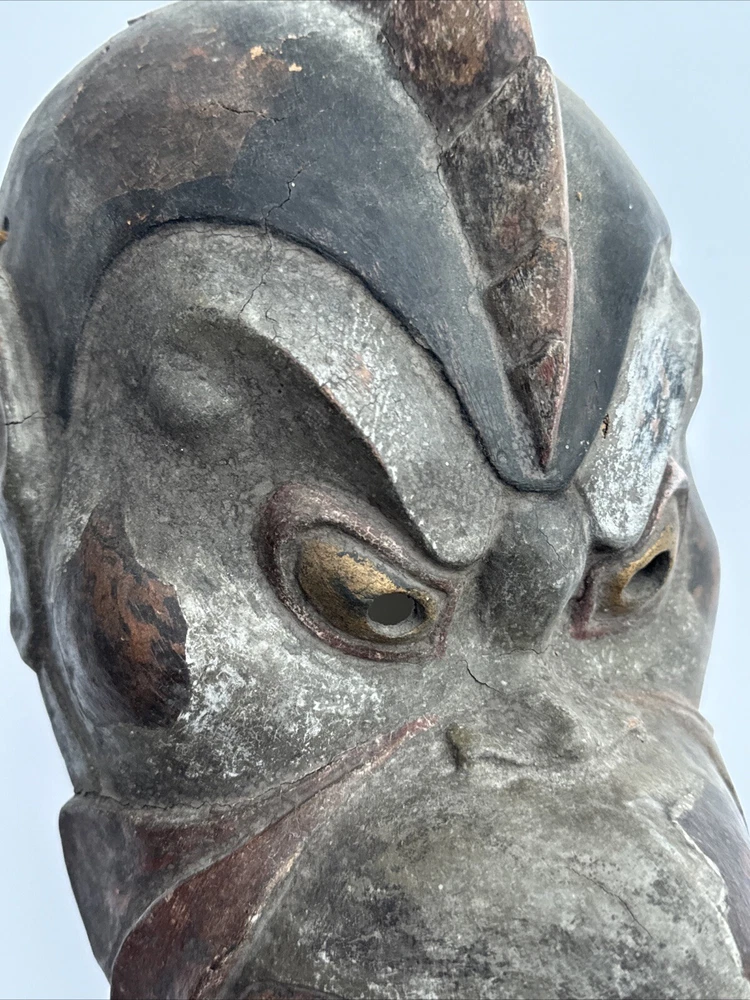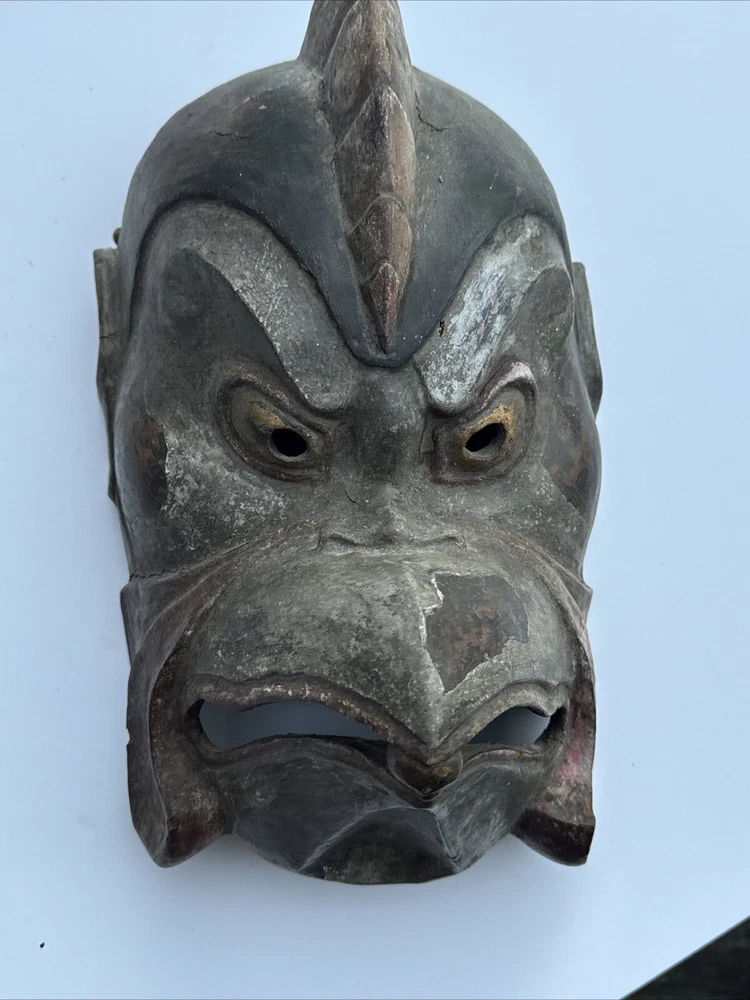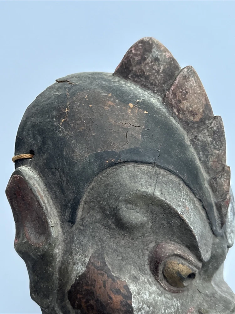 ANTIQUE JAPANESE SIGNED MASK PAINTING CARVING THEATRE MANBIRD FACE HEAD RELIC