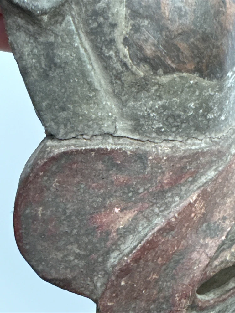 Samuel Collection SAVE ME AS YOUR FAVORITE ART AND ANTIQUES DEALER. NEW ITEMS ADDED DAILY. MUSEUM QUALITY ESTATE ITEMS. Measurements : BREAKS , CRACKS , PAINT LOSS, AND OTHER MILD DAMAGE AND LOSS AS SHOWN. FAIR- GOOD SHAPE. AROUND 100 YEARS OLD. ANY HELP ON ARTIST NAME OR TRANSLATION? THE PRICE IS BASED ON WHAT I PAYED TO OWN IT . 13 BY 8 BY 6 INCHES. FROM A COLLECTORS ESTATE .