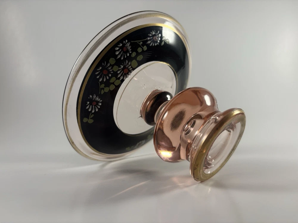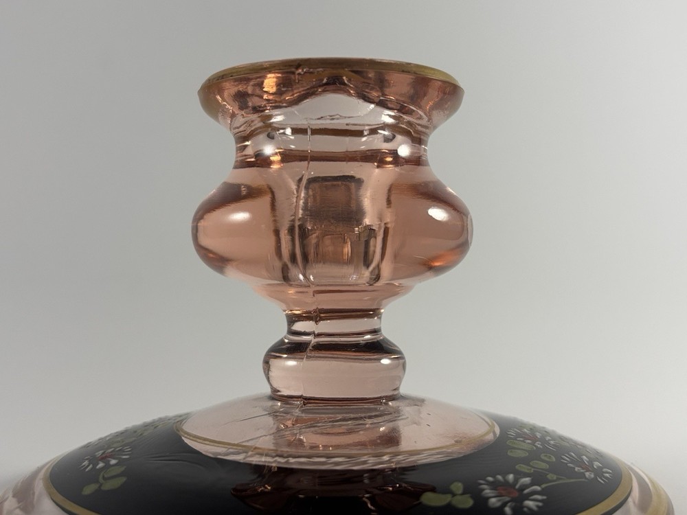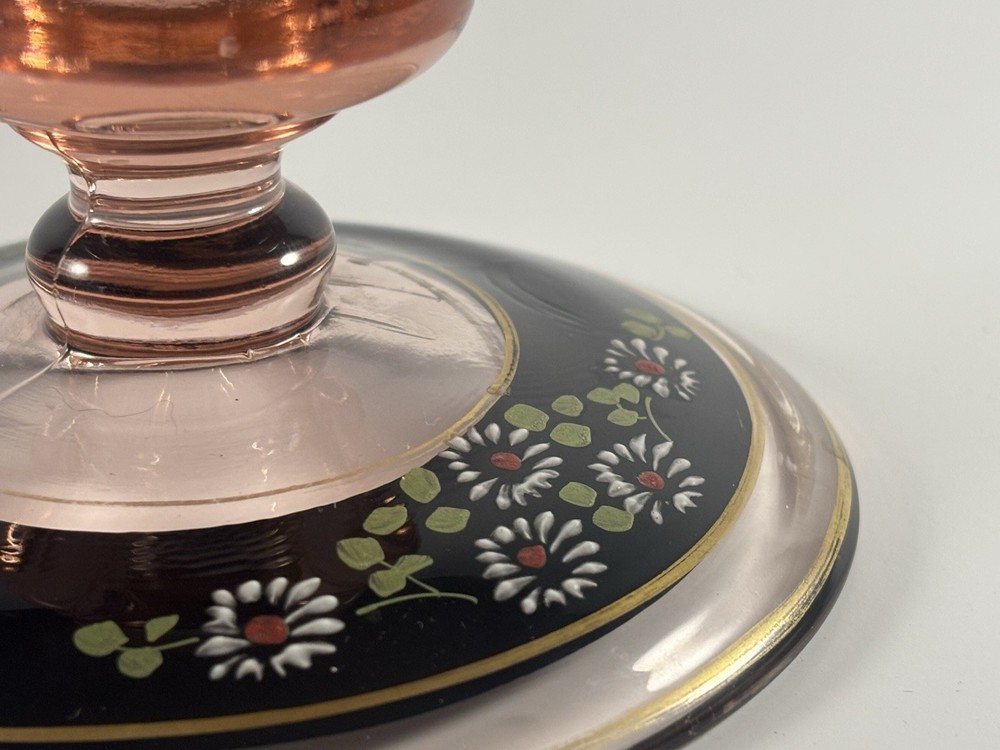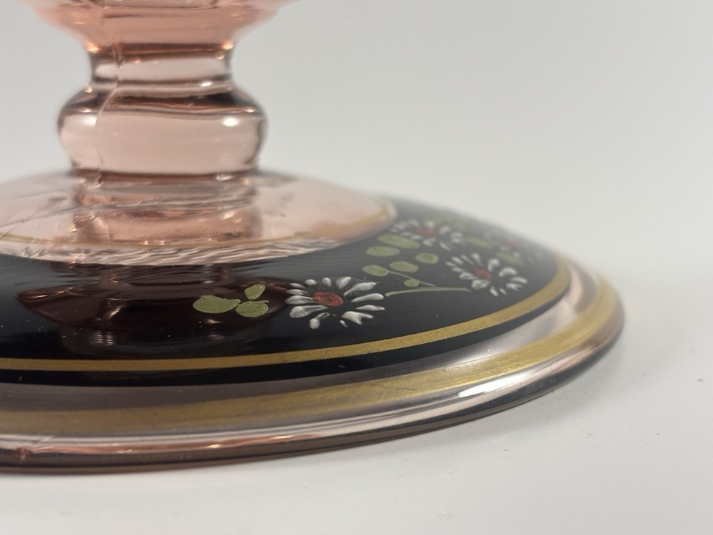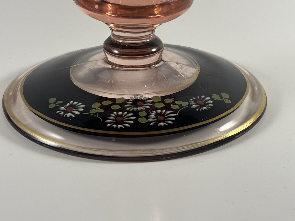 Country of Origin:United StatesMaterial:GlassFeatures:Hand PaintedOccasion:All OccasionsBrand:Tiffin?Finish:GlossyColor:PinkStyle:Art DecoType:Candle HolderSubject:FlowerPattern:Floral