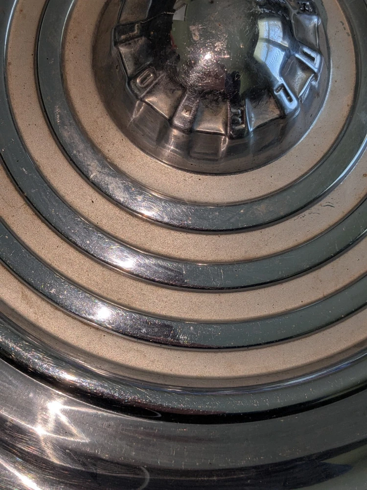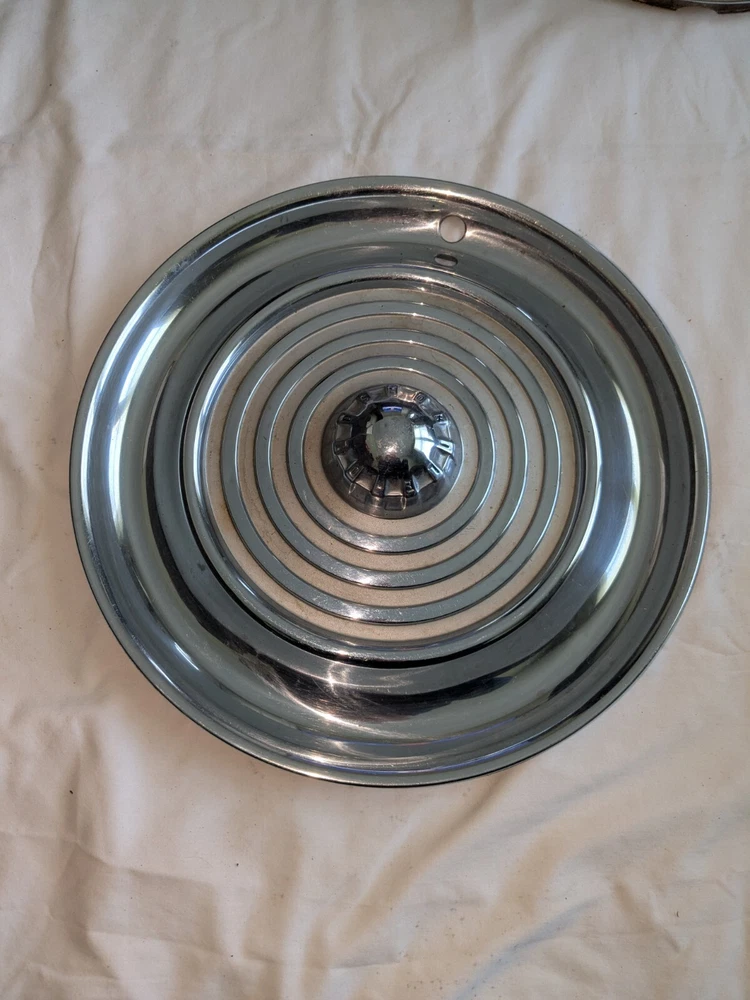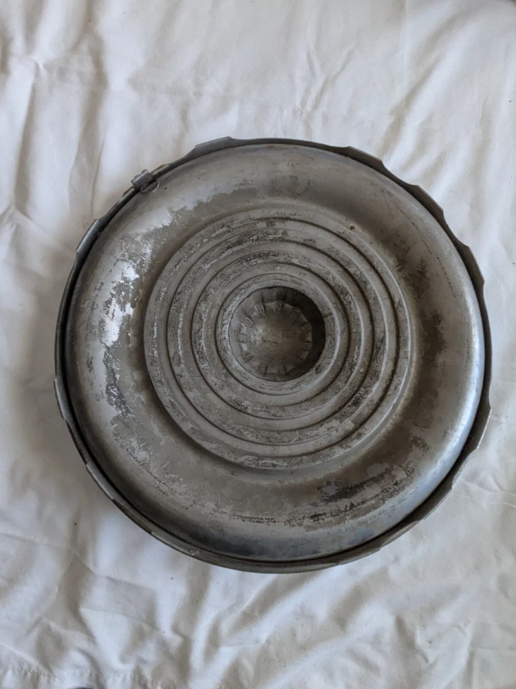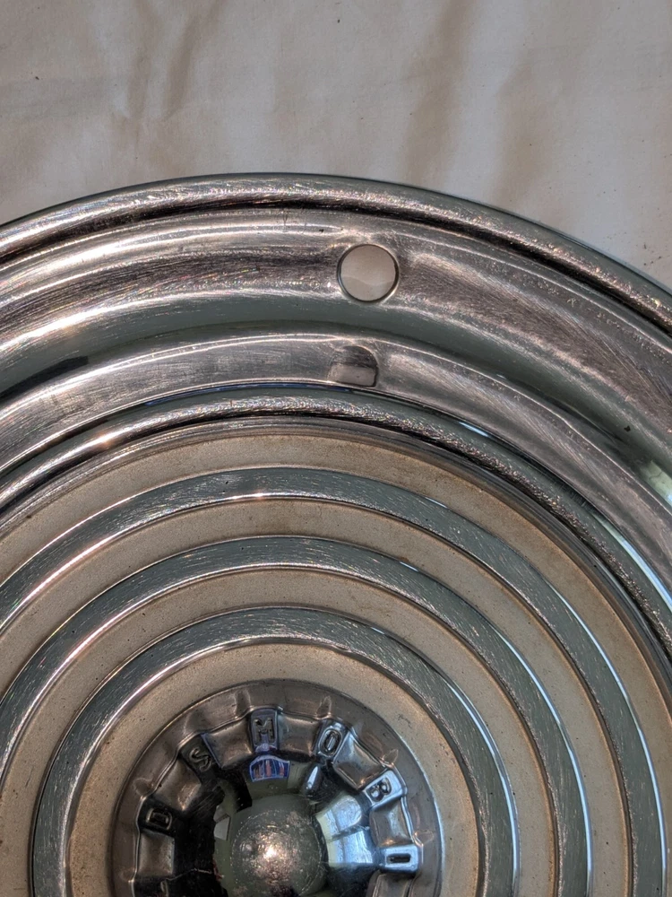 The photos show everything. As far as I know, this is for a 1956 model Oldsmobile. Possibly Delta 88 or 98? I do not know. Not sure which model, possibly multiple models. Possibly 1956 and / or other years. All I know for sure is that it is for Oldsmobile. Be sure to look at the beautiful cone in the center, and also look at all the other photos and be sure this is what you need for your vehicle. There are no returns . The diameter of the mounting rim on the back side measures approximately 14.5 inches across. This is a very nice hubcap, likely daily driver quality, maybe not show quality. But maybe it could be, I do not know what the standards are for show quality. I see no dents and no dings whatsoever. Possibly I'm missing one, but I honestly don't think so. It is not out of round. It may need very minor cleaning or polishing. The backside is somewhat dirty, but obviously that will not be seen once this hubcap is mounted on your vehicle. Please use the zoom feature on each photo and ask any questions you may have. THIS WILL SHIP USING UPS, FEDEX OR USPS, WHICHEVER I SELECT AT TIME OF SHIPPING.