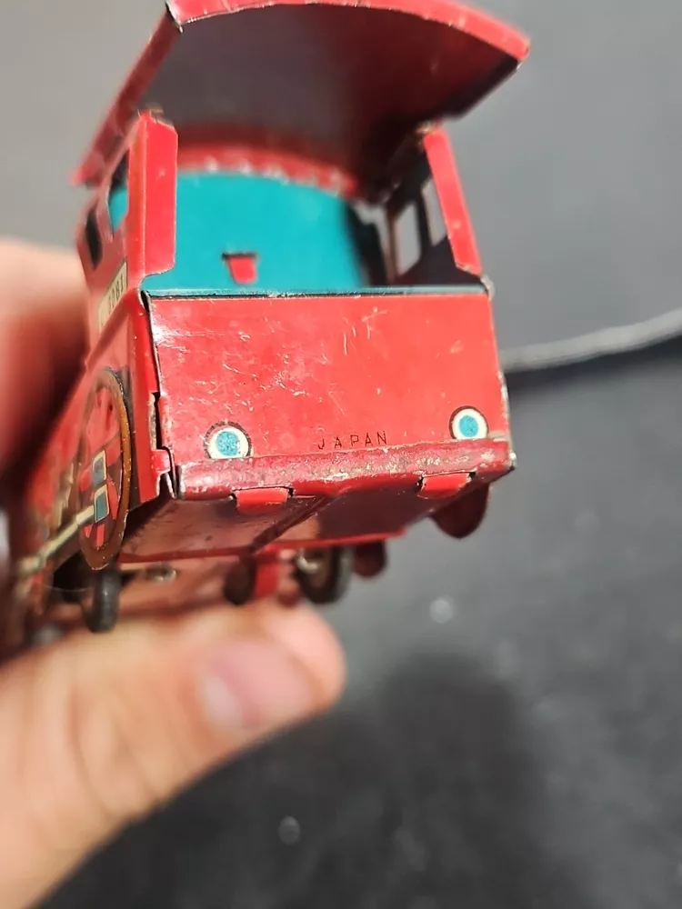 ANTIQUE Vintage tin toy locomotive train red C 3081 GUC JAPAN Good used condition vintage tin toy train. Sold as is. Markings from age and use. See pictures. Product will be shipped timely and packaged with care. Offers are encouraged. Please feel free to reach out with questions. Please see pictures. Thank you. This antique vintage tin toy locomotive train is a true collector's item. Made of high-quality tin material, this vintage toy is the perfect addition to any collection. With its bright red color and intricate details, this locomotive train is sure to bring a nostalgic touch to any room. As a vintage piece, this toy train has a unique charm and character that cannot be replicated. Whether you're a toy collector or just looking for a fun decorative piece, this antique tin toy is a must-have. So add a piece of history to your collection with this vintage toy locomotive train.