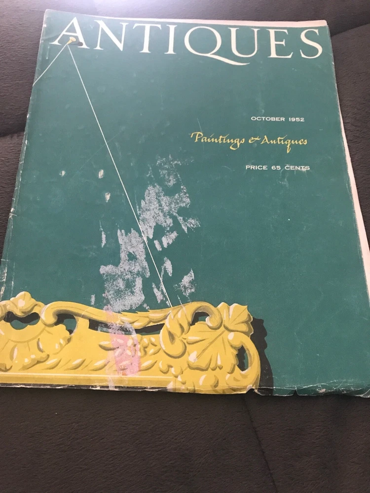 The Magazine ANTIQUES October 1952 Condition is Good. Shipped with USPS Media Mail. A vintage Magazine over 60 years old! Magazine shows wear look at pictures! No missing pages!