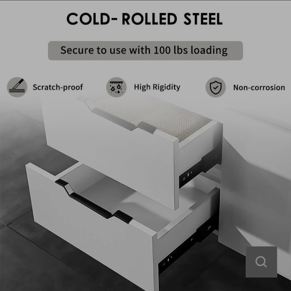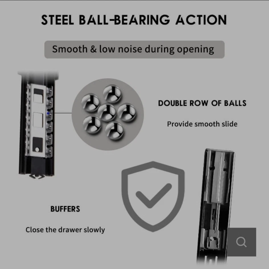 Soft Close Drawer Slide AOLISHENG drawer slides have built-in damping silent devicesand the sound is as low as 25 decibels when closed, makingthe drawers smoother and quieter. Discover more about the Residential Drawer Slides New Brass Hydraulic Shock Absorbers: Automatic Soft-Close Drawer Slides Safe and Quiet Push open drawer slides can hold 100 lbs, 40 lbs more than regular slides. Fully extended and detachable slide rails for easy installation and storage The drawer slides are made of 1.2mm high quality cold rolled steel After testing, the number of opening and closing of the slide rail is as high as 150,000 times, and the service life is 30 years Aolisheng slide rail has excellent anti-rust and mute function Two rows of solid steel balls inside for smoother pulling Installation Guide: Slides Length: 11.81"(300mm), pull-out length:10.94"(278mm),suitable for drawers with internal depth ≥ 11.81". Left mounting clearance: 0.5" (12.7mm), right mounting clearance: 0.5" (12.7mm). 8 mounting screws are included in both ends of the product package. When installing, please push the inner ball bearing to the top of the slide rail first, then connect it with the slide rail, and finally complete the installation with a slight push.