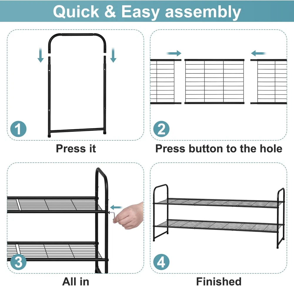 Store New Arrivals Add to Favorite View Feedback Contact AOODA Long 2 Tier Shoe Rack for Closet Metal Wide Stackable Shoe Storage Organizer for Entryway, Bedroom, Floor, 18-Pairs Low Shoe Shelf, Black Description Item model number AD-063-HS Style Modern Number of Items 1 Maximum recommended load 200 Pounds Country of Origin China Shelf Thickness 4 Inches Shelf Type Tiered Shelf Shape Rectangular Unit Count 29.99 Count Room Type Bedroom Weight capacity Maximum weight: 30 Pounds Assembly Required Yes Batteries required No Product Dimensions 11.4"D x 42.7"W x 18.7"H Installation Type Freestanding Model Name AD-063-HS Material Metal Mounting Type Floor Mount Finish Type Chrome Specific Uses For Product Shoes Included Components Metal Shoe Rack Product Name Shoe Rack Item Weight 4.97 pounds Number of Shelves 2 Special Feature Heavy Duty,Stackable,With Adjustable Shelves Weight Limit 30 Pounds Color Black Furniture Finish Chrome Recommended Uses For Product Shoe Finish types Chrome Manufacturer AOODA Brand AOODA Product Care Instructions Wipe with Dry Cloth Size 11.4 x 42.7 x 18.7 【Long Shoe Rack for 18 Pairs of Shoes】 Size of metal shoe rack: 42.7"Wx11.4"D x18.7"H. Longer 2-tier shoe organizer for closet can store 18 pairs of shoes for men, women and kids, each tier wide enough storage for 6 pairs of men's sneakers, tennis shoes etc, extra bottom storage for flats, slippers and flip flops enough; 【The More Stable, the Better!】 Shoe rack for entryway made of anti-rust metal pipes and wired grid, strong load-bearing (each layer can bear about 11-15 lb), heavy duty shoe rack is different from the cloth shoe rack that sags obviously when shoes are put in; Also can store water bottles, drinks or small kitchen appliances; 【No More Messy for Boots】 The height of each tier is 8", fit knee boots, high heels well, it's no problem if you want store rain boots, because it is waterproof and easy to clean, just wiped with a towel. Stackable shoe rack keep your garage, hallway, dormitory, patio, entrance and mudroom room away from mess; 【Flexible Combination】 Use your imagination and according to space needs, you can vertically stack into a 4-tier adjustable shoe rack for store more shoes, instead of piling shoes in the corner. Shoe racks for bedroom closet also can remove 1 or 2 layers to fit high boots; 【Easy to Assemble】 Closet shoe rack comes with numbered parts and detailed illustrated instructions, simple structure design makes it very easy to assemble. Product Description Are you tired of the shoes in the closet are dusty and messy? Shoe Shelf Storage Organizer for Home Storage Space? Small Closet? Are you tired of the shoes are dusty and messy? What You Care About is What We Care About! ! ►Wider and Higher ►Primary Material ►Combination&Removable shelf Detail of Stackable Shoe Organizer Stackable Design Include 4 rubber connectors and stack up to multiple units that maximizes storage space. Steel Frames A sturdy wire frame for durability. Metal Wire Grid Strong Load-Bearing and easy to clean, can be wiped with a damp cloth if needed. Metal Pipes Assembly is easy, simply screw the poles into the frames with screwdriver. Compare These Shoe Rack Storage Add to Cart Add to Cart Add to Cart Add to Cart Add to Cart Customer Reviews 4.7 out of 5 stars 6,189 4.4 out of 5 stars 44 4.6 out of 5 stars 701 4.5 out of 5 stars 144 4.7 out of 5 stars 7,113 Price $21.69 $ 21 . 69 $19.99 $ 19 . 99 $19.49 $ 19 . 49 $14.99 $ 14 . 99 $13.99 $ 13 . 99 Color Bronze Black Black Black White Capacity 24 Pairs 25 Pairs 20 Pairs At Least 24 Pairs 14 Pairs Material Fabric+Metal Fabric+Metal PVC+Fabric Oxford Fabric Mesh+Fabric Usage Floor,Closet,Entryway Floor,Closet,Entryway Over the Door,Closet Over the Door,Closet,Bathroom Over the Door,Closet,Bathroom Adult Assembly Required ✔ ✔ ✔ ✔ ✔ ABOUT US We offer the best prices around on high quality products. Our E-store includes media such as books, movies, music and games while offering electronics, toys, sporting apparel, clothing, tools, general home, garden items and more. SHIPPING We are always working hard to ensure your package arrives as soon as possible. Please understand that some factors like weather, high postal traffic, and the performance of shipping companies are outside of our control. We offer free shipping to the lower 48 states and ship within 2 business days of payment, usually sooner. We do not accept P.O. Boxes. Please provide a physical address. RETURNS We offer a 30-Day Return Policy on items which you are not completely satisfied with. You have the option for a full-refund or an exchange of the item. No returns are available on items shipped outside of the USA. PAYMENT We accept PayPal. CONTACT US This page content is yet to come Please ad us to your favorite seller and visit again later Thank You CUSTOMER SATISFACTION We try our very best to make sure every customer is completely satisfied. If there's a problem, message us! We're happy to help.
