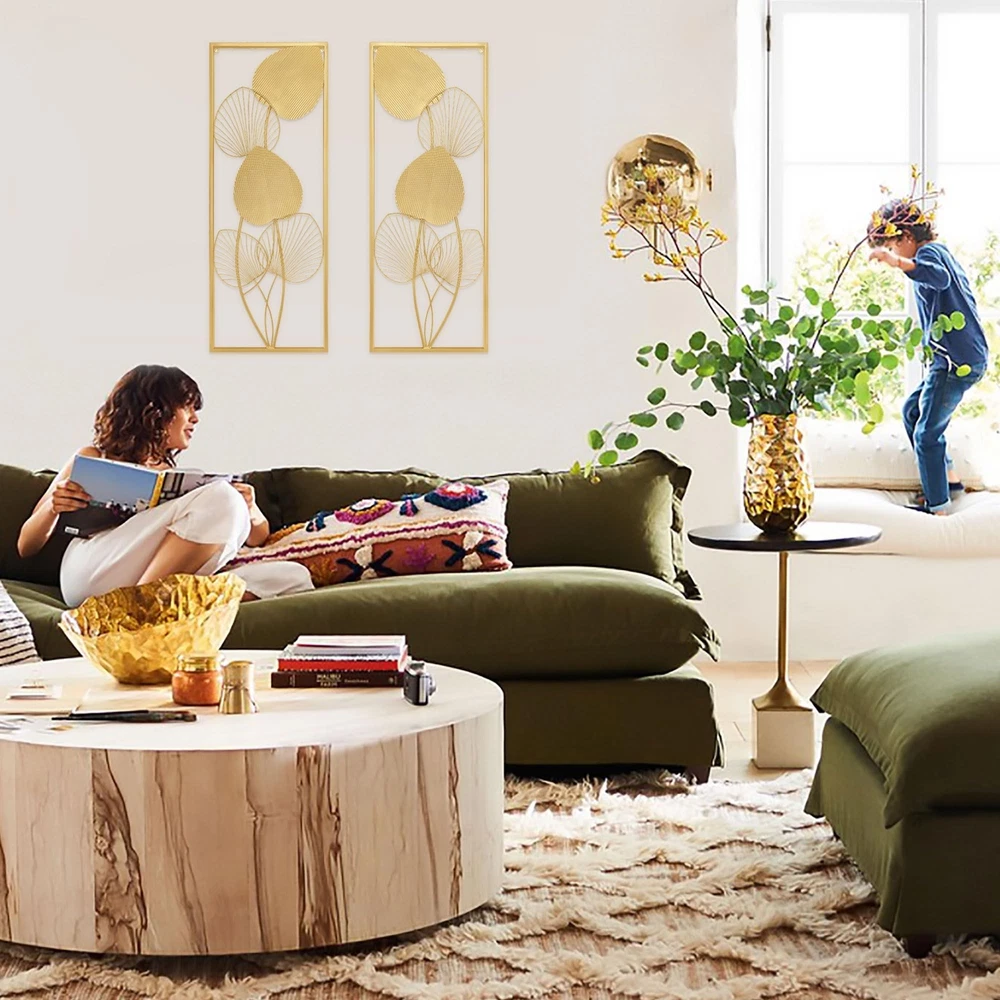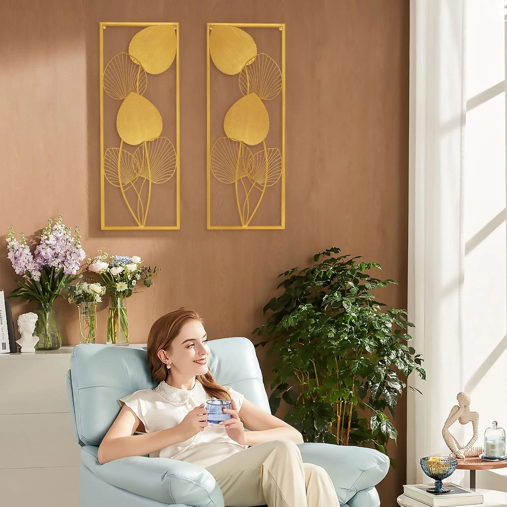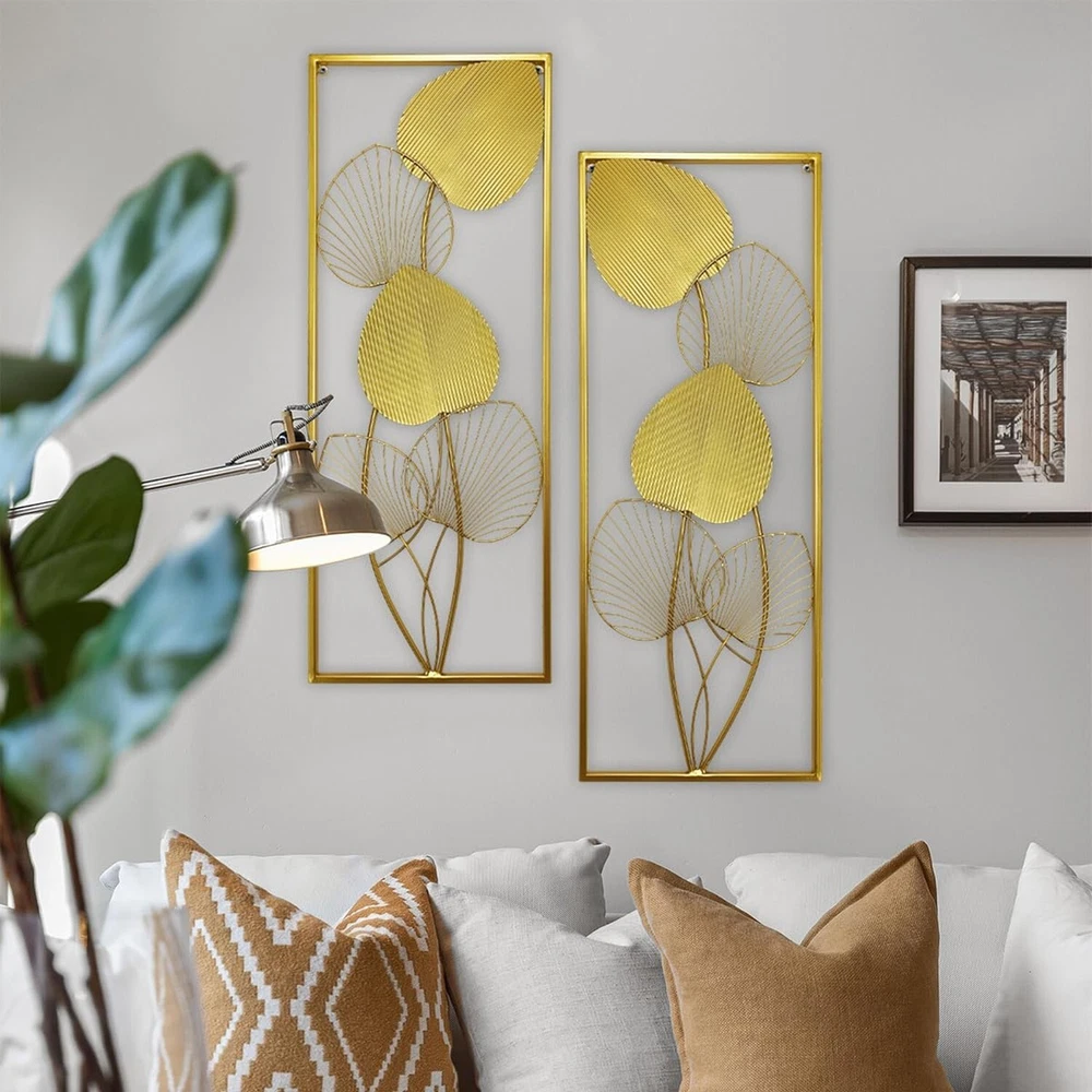 AOTISBAO 32" Large Home Metal Wall Decor Set of 2 Gold Metal Wall Art Wall Sculptures Ruffled Fan Palm Leaf Wall Hanging Decor with Frame for Living Room Bedroom Study Room Home Office Product Details Color: Fan Palm Leaf Brand: AOTISBAO MPN: Does not apply UPC: Does not apply EAN: Does not apply Product Dimensions: 32 x 12 x 0.2 inches Item Weight: 4.41 pounds Country of Origin: China Date First Available: June 14, 2023 Wall Decor Living RoomBig wall decorwall sculptures adopt all-metal frame, which is made of high quality iron material. The edges and sides with no burrs, which offer a comfortable using experience, while the sturdy construction ensures the room decor won't easily suffer from damage or wear-and-tear. Personalize Your RoomExperience the beauty of nature with our wall sculpture designs inspired by ruffled fan palm leaves. These wall art decors emanate a natural forest feel, which will enhance the strong personality of any room. Multi-Scene UseWhether youre looking to create a luxury and elegent atmosphere in your living room, house, dining room, bathroom, kitchen, restaurant, bar, office, hotel or outdoor patio, these modern home decors can satisfy you. Convenient to InstallThe installation of these gold wall decors are very simple, it only takes 2-3 minutes. With 2 holes at the top, you just need to drive nails into the wall to hang the living room wall decors. Cleaning is also a breeze, simply use a damp cloth to remove any dust or dirt from the surface. Nice Gift IdeaOur large wall decors set of 2 measures 32"H x 12"W x 0.5"D, making it the perfect gift for any occasion. Whether its a housewarming gift, business gift, or for someone special during Mother's Day, Father's Day, Thanksgiving, or Christmas Day, these home decorations for living room are sure to be well-received.